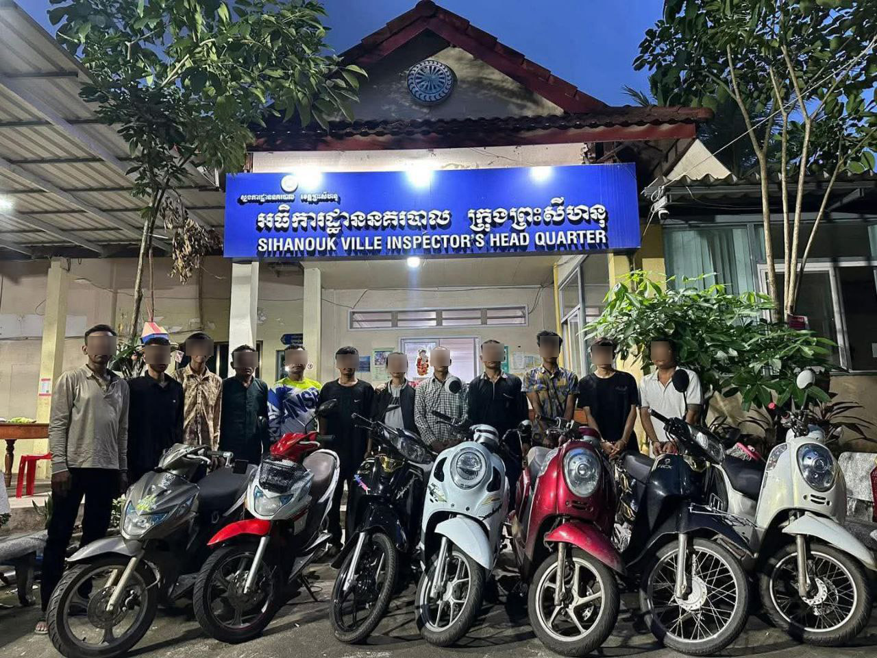 ខេត្តព្រះសីហនុ៖ ដោយមានបទបញ្ជាពី លោក ឧត្តមសេនីយ៍ឯក ស រដ្ឋា អគ្គស្នងការរងនគរបាលជាតិ និងជាស្នងការនគរបាលខេត្តព្រះសីហនុ ចាត់ឲ្យលោកឧត្តមសេនីយ៍ត្រី ណុប បញ្ញា ស្នងការរងផែននគរបាលព្រហ្មទណ្ឌ ខេត្តព្រះសីហនុ ចុះដឹកនាំបញ្ជាផ្ទាល់ រួមនឹង អធិការដ្ឋាននគរបាលក្រុងព្រះសីហនុ កាលពីថ្ងៃទី១៩ ខែតុលា ឆ្នាំ២០២៥ សហការជាមួយ កម្លាំងរបស់ស្នងការដ្ឋាននគរបាលរាជធានីភ្នំពេញ បានធ្វើការបង្ក្រាប ជនសង្ស័យ ជាបន្តបន្ទាប់ សរុបចំនួន ១២នាក់ (ស្រី ០១នាក់) ពាក់ពន្ធ័ជាមួយអំពើលួចកាច់បំបែកសោរ ក លួចម៉ូតូ និងទទួលផលក្នុងអំពើលួចយ៉ាងសកម្មនៅក្នុងភូមិសាស្ត្រក្រុងព្រះសីហនុ កន្លងមក ព្រមដកហូតម៉ូតូបានជាច្រើនគ្រឿង យកមករក្សាទុកនៅអធិការដ្ឋាននគរបាលក្រុងព្រះសីហនុ។