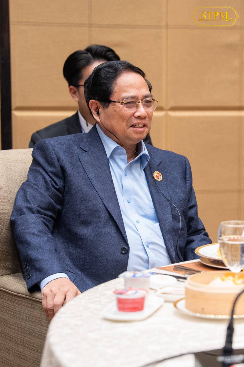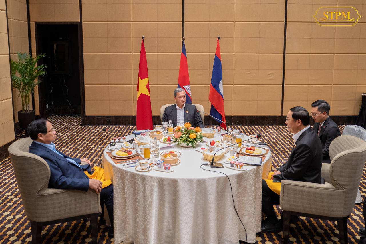 សម្តេចបវរធិបតី ហ៊ុន ម៉ាណែត នាយករដ្ឋមន្ត្រីនៃកម្ពុជា អញ្ជើញជួបជាមួយឯកឧត្តម ផាម មិញ ជិញ (Pham Minh Chinh) នាយករដ្ឋមន្ត្រីនៃសាធារណរដ្ឋសង្គមនិយមវៀតណាម និងឯកឧត្តម សនសៃ ស៊ីផាន់ដន (Sonexay Siphandone) នាយករដ្ឋមន្ត្រីនៃសាធារណរដ្ឋប្រជាធិបតេយ្យប្រជាមានិតឡាវ ក្នុងជំនួបពិសារអាហារពេលព្រឹកការងារ ។