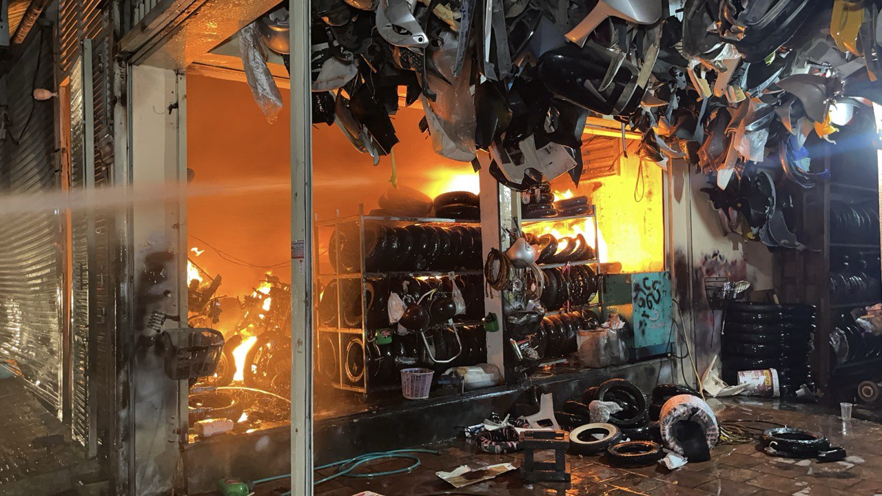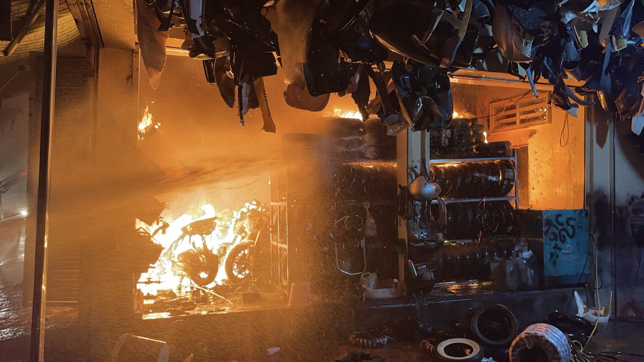 ឆេះឃ្លាំងស្តុក និងលក់ម៉ូតូ ផ្អើលសង្កាត់ទួលស្វាយព្រៃទី១យប់មិញ មិនទាន់ដឹងមូលហេតុនៅឡើយ