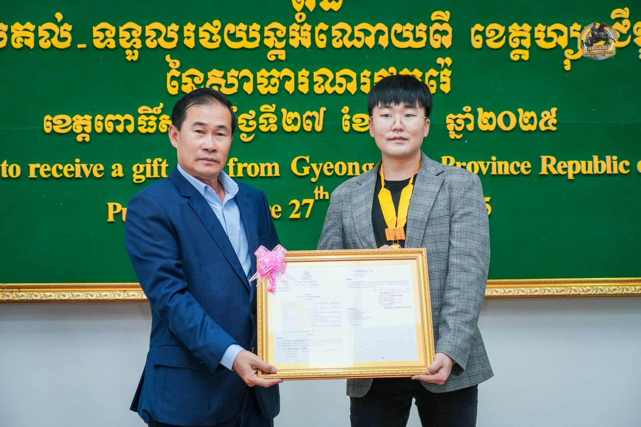 បន្ទាពីប្រគល់-ទទួលរថយន្តរួចមក ក៍មានកម្មវិធីប្រគល់គ្រឿងឥស្សរិយយស លិខិតថ្លែងអំណរគុណ ព្រមទាំងវត្ថុអនុស្សាវរីយ៍ ជូនដល់ដល់សប្បុរសជន ០៥រូប នៃសាធារណរដ្ឋកូរ៉េផងដែរ។ នេះជាចំណងសាមគ្គីភាពមួយទៀត រវាងខេត្តGyoenggi-do នៃសាធារណរដ្ឋកូរ៉េ ជាមួយខេត្តពោធិ៍សាត់ នៃព្រះរាណាចក្រកម្ពុជា