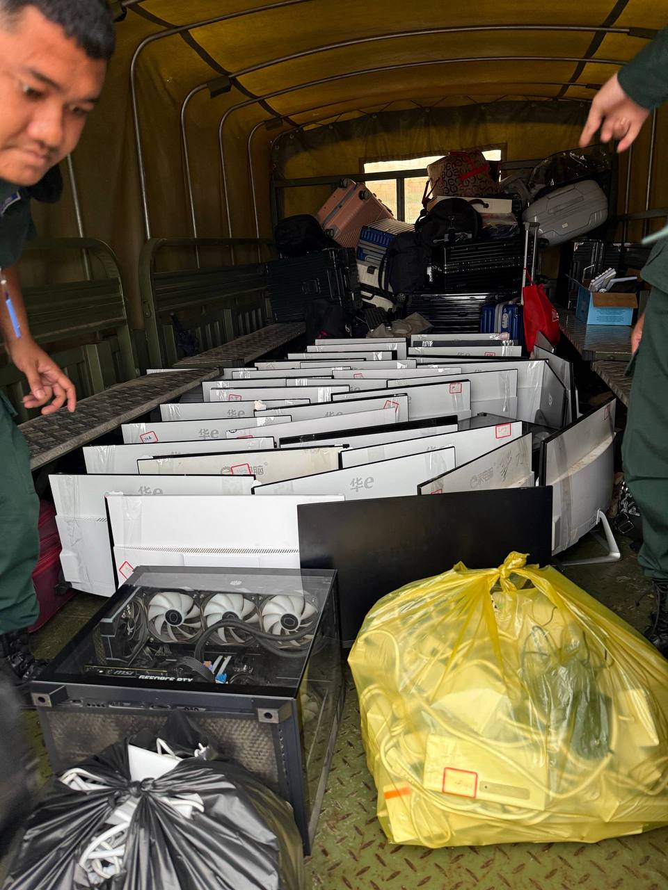ឯកឧត្តម ទេព អស្នារិទ្ធ អ្នកនាំពាក្យក្រសួងព័ត៌មានបានឲ្យដឹងថា ក្នុងប្រតិបត្តិការបង្ក្រាបនោះ សមត្ថកិច្ចជំនាញបានដកហូតសម្ភារៈ ជាវត្ថុតាងរួមមានៈAll in on ចំនួន ៥ គ្រឿង Monitor ចំនួន ២ គ្រឿង CPUចំនួន ២ គ្រឿង និងទូរសព្ទដៃចំនួន ៣២គ្រឿង។