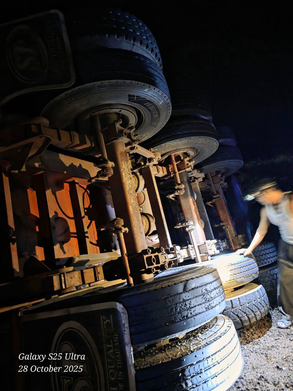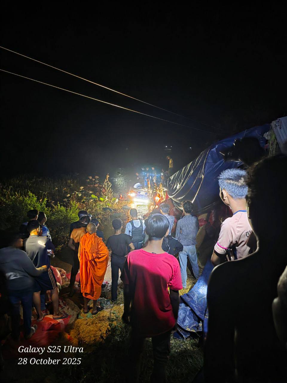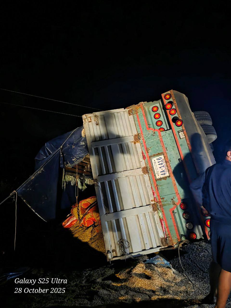 ខេត្តបន្ទាយមានជ័យ ៖ រថយន្តធុនធំសណ្តោងរ៉ឺម៉កប្រភេទB1 ដឹកស្រូវពេញក្ រឡាប់ផ្ញារជើង ដោយកាប៊ីនធ្លាក់ចូលស្រះទឹក បណ្តាលឱ្យជាប់ទាំងអ្នកបើកបរនិងព្រូក្នុងរថយន្តនោះ មិនដឹងថាស្លាប់ឬរស់នៅឡើយទេ ខណៈប្រជាពលរដ្ឋនាំគ្នាជួយសង្គ្រោះដែរ តែជួយមិនទាន់បានឡើយទេ…