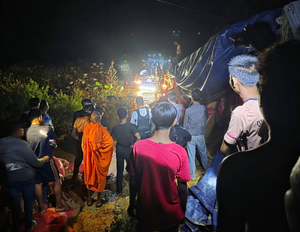 ឡានដឹកស្រូវរាប់តោនក្រឡា.ប់ផ្ងារជើង កាប៊ីនធ្លាក់ចូលស្រះទឹកជាប់ទាំងអ្នកបើកបរនិងព្រូ មិនដឹងស្លា.ប់ឬរស់
