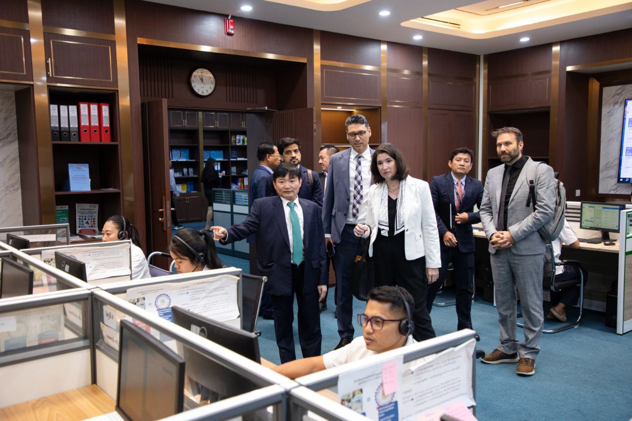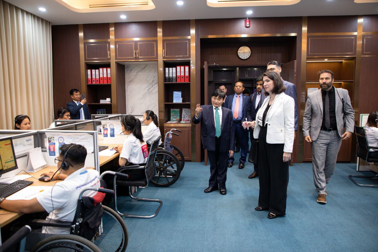 បន្ទាប់ពីបញ្ចប់ជំនួបពិភាក្សាការងារ ឯកឧត្តមរដ្ឋមន្ត្រីបានអញ្ជើញ លោកស្រី Tania Meyer ប្រធានគ្រប់គ្រងធនាគារពិភពលោកប្រចាំនៅកម្ពុជា និងគណៈប្រតិភូទៅទស្សនាបន្ទប់ផ្តល់ព័ត៌មាន ២៤ម៉ោង តាមរយៈលេខទូរសព្ទ Hotline 1297 ដែលបម្រើសេវាកម្មស្វែងរកការងារធ្វើដល់បងប្អូនប្រជាពលរដ្ឋ ជាពិសេសពលករខ្មែរដែលបានវិលត្រឡប់មកពីប្រទេសថៃវិញ៕