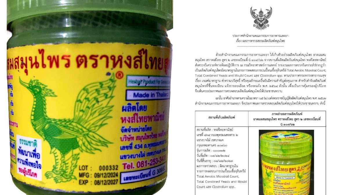 ទីក្រុងបាងកក ៖ រដ្ឋបាលចំណីអាហារ និងឱសថរបស់ប្រទេសថៃ ហៅកាត់ថា FDA កាលពីថ្ងៃទី២៨ ខែតុលា ឆ្នាំ២០២៥ បានប្រកាសថា ប្រេងហិតម៉ាក «Hong Thai Formula 2» មានការបំពុលដោយបាក់តេរីខ្ពស់ គ្មានសុវត្ថិភាពសម្រាប់អ្នកប្រើប្រាស់ ជំរុញឱ្យក្រុមហ៊ុន Thai Herbal Hong Thai ប្រមូលផលិតផលរបស់ខ្លួនចំនួន ២០ម៉ឺនដប ត្រឡប់មកវិញ។ នេះបើតាមប្រភពពីកាសែតថៃ The Nation និងសារព័ត៌មាន CNA និង VNExpress បានចេញផ្សាយ។