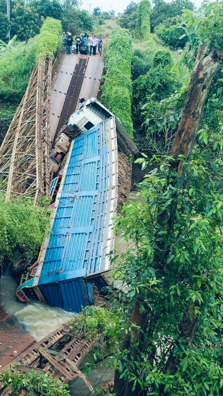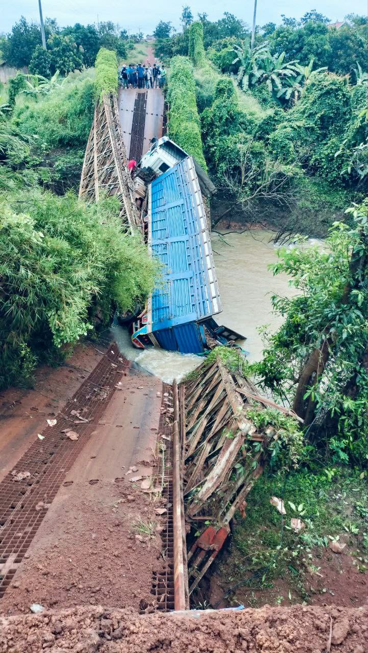 ខេត្តក្រចេះ ៖ រថយន្តធុនធំប្រភេទក្បាលសណ្តោងដឹកដំឡូងមីស្រស់មួយគ្រឿង បានបើកបរឆ្លងកាត់ស្ពានដែកបេឡេត៍ បណ្ដាលឲ្យស្ពានទាំងមូលបាក់ធ្លាក់ទាំងស្រុងប្រវែង៤៣ ម៉ែត្រ ដែលធ្វើឲ្យការធ្វើដំណើររបស់ប្រជាពលរដ្ឋកាត់ផ្ដាច់ទាំងស្រុង ហេតុការណ៍កើតឡើងកាលពីវេលាម៉ោង៧ព្រឹកថ្ងៃទី៣០ ខែតុលា ឆ្នាំ២០២៥ ស្ថិតនៅចំណុចស្ពានឆ្លូង ក្នុងភូមិសែន អភិវឌ្ឍន៍ ឃុំគ្រញូងសែនជ័យ ស្រុកស្នួល ខេត្តក្រចេះ។