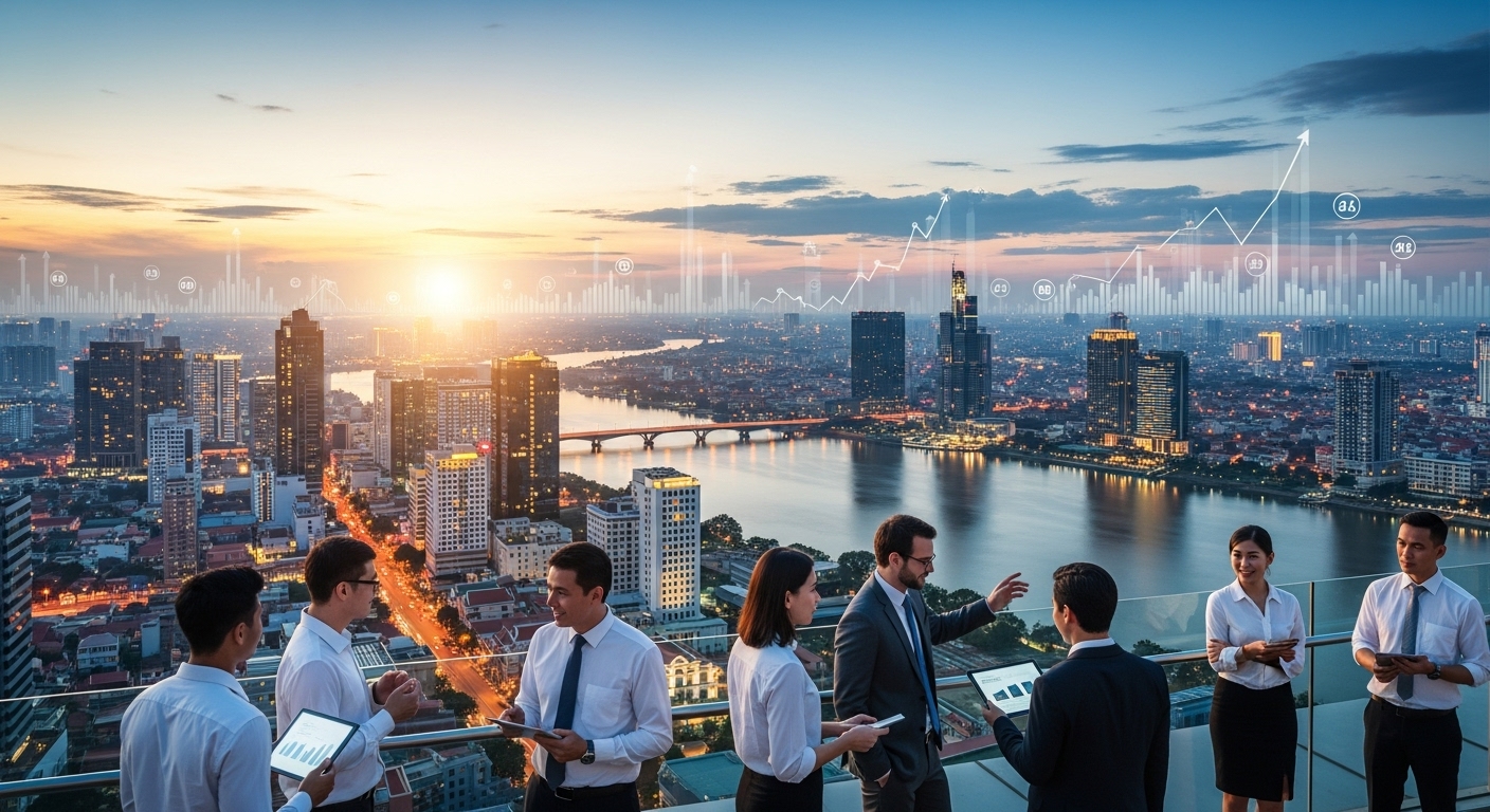 រូបតំណាងដោយ AI ប្រភពពីក្រុមប្រឹក្សាអភិវឌ្ឍន៍កម្ពុជា បានឲ្យដឹងថា នៅថ្ងៃទី២៨ ខែតុលានេះ អ្នកជំនាញកម្ពុជា និងដៃគូអភិវឌ្ឈន៍បានជួបប្រជុំគ្នាពិភាក្សាលើសេចក្ដីព្រាងក្របខ័ណ្ឌទស្សនាទាន ស្ដីពីយុទ្ធសាស្ត្រជំរុញវិនិយោគនេះហើយ ។