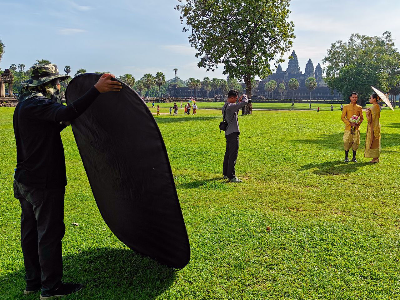ក្នុងនោះដែរ លោកឡេក គឹមលីន ប្រធានគ្រប់គ្រងភ្នាក់ងារទេសចរណ៍ប្រាសាទអង្គរវត្ត បានប្រាប់ឱ្យដឹងថា ជារៀងរាល់ឆ្នាំ ក្រោយថ្ងៃចេញវស្សា នៅប្រាសាទអង្គរក្នុងមួយថ្ងៃមាន កូនកម្លោះកូនក្រមុំ ដែលចូលចិត្តមកថតផ្តិតយករូបភាពយ៉ាងហោចណាស់ ពី៥០ ទៅ៦០ គូមុនរៀបអាពាហ៍ពិពាហ៍ទុកជាអនុស្សាវរីយ៍ ។ ការថតរូបអាពាហ៍ពិពាហ៍ដោយភ្ជាប់ជាមួយប្រាសាទអង្គរវត្ត ចាប់តាំងតែពីម៉ោង៧ព្រឹក រហូតដល់ម៉ោង៥ល្ងាច ។ អ្នកថតរូបទៀតសោត បានជ្រើសរើសទីតាំងពិសេសៗ និងកាលវេលាតាមការច្នៃប្រឌិតបានធ្វើឱ្យរូបភាពមានកាន់តែមានសោភ័ណភាព និងស្រស់ស្អាតប្រៀបបានឋានសួគ៌លើដី ។
