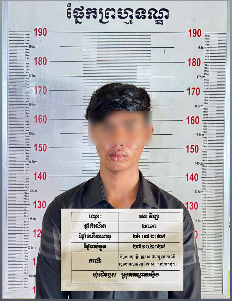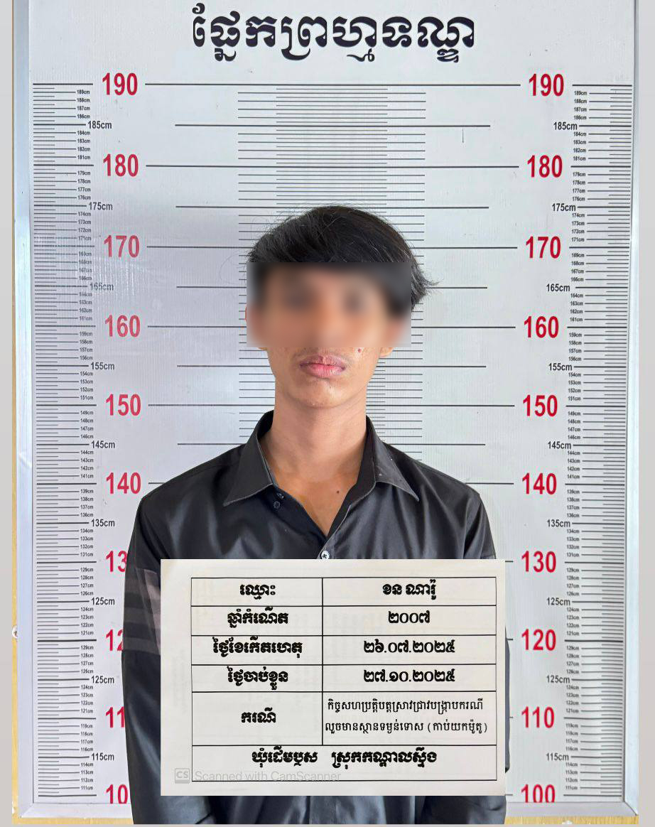 ខេត្តកណ្តាល ៖ ជនសង្ស័យ០២នាក់ ក្នុងចំណោមបក្ខពួកចំនួន៧នាក់ ដែលជាមុខសញ្ញាកាប់ប្លន់យកម៉ូតូពីអ្នកដំណើរនាពេលរាត្រី ត្រូវបានសមត្ថកិច្ច ស្រាវជ្រាវឃាត់ខ្លួនបានកាលពីវេលាម៉ោង០០:៣០នាទីរំលងអធ្រាត្រចូលថ្ងៃទី២៦ តុលា ២០២៥ ។