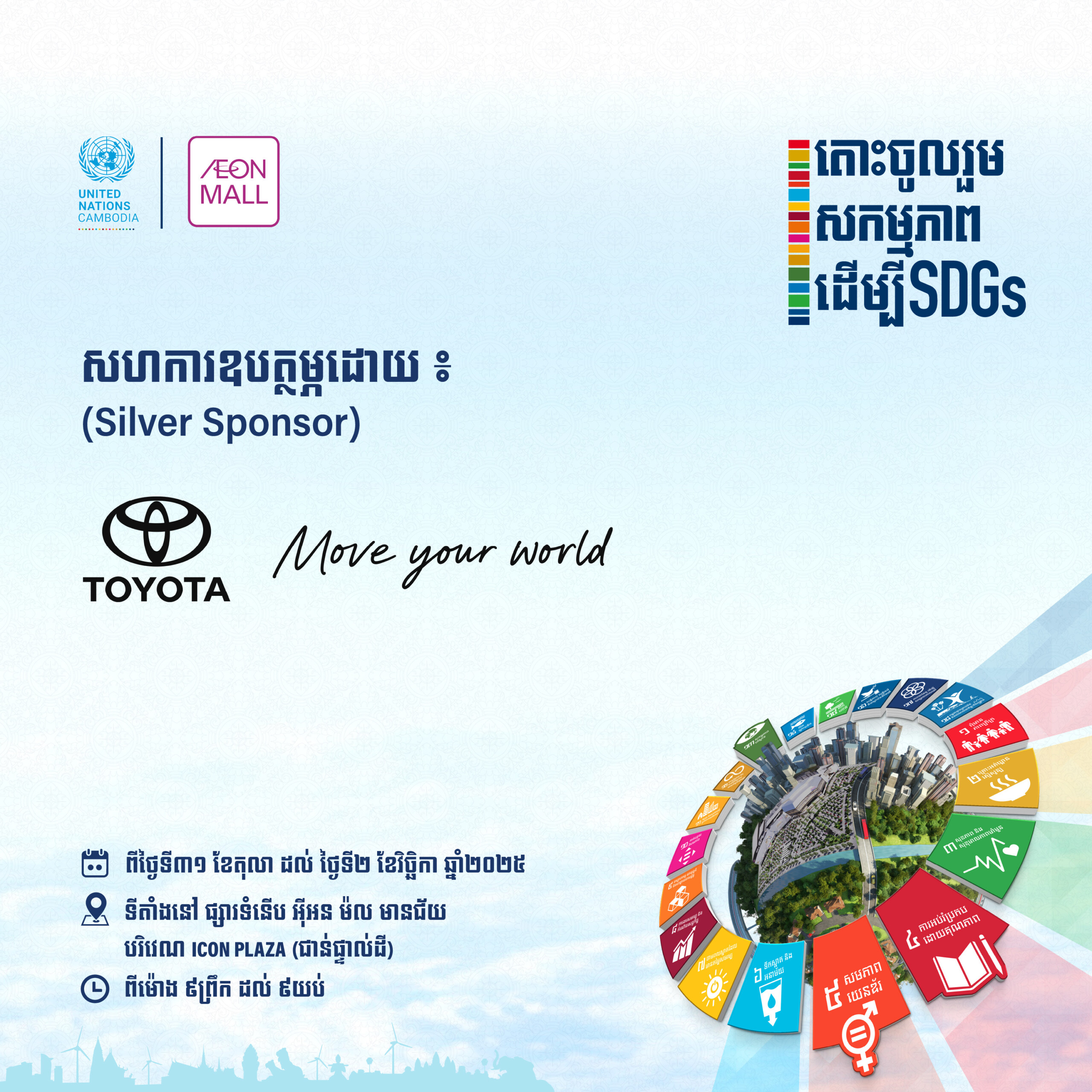 រាជធានីភ្នំពេញ ៖ ក្រុមហ៊ុន តូយ៉ូតា (ខេមបូឌា) មានសេចក្តីសោមនស្សរីករាយក្នុងការចូលរួមសហការឧបត្ថមនៅក្នុងកម្មវិធី «តោះចូលរួមសកម្មភាពដើម្បី អេស ឌី ជី» នឹងជួបគ្នាសារជាថ្មីនៅឆ្នាំ “២០២៥” ! ដែលបានរៀបចំឡើងដោយ ក្រុមហ៊ុន អ៊ីអន ម៉ល ខេមបូឌា ជាលើកទី ៣ នាពេលខាងមុខនេះ តាមរយៈកិច្ចសហប្រតិបត្តិការយ៉ាងជិតស្និទ្ធជាមួយអង្គការសហប្រជាជាតិ ប្រចាំនៅកម្ពុជា ។