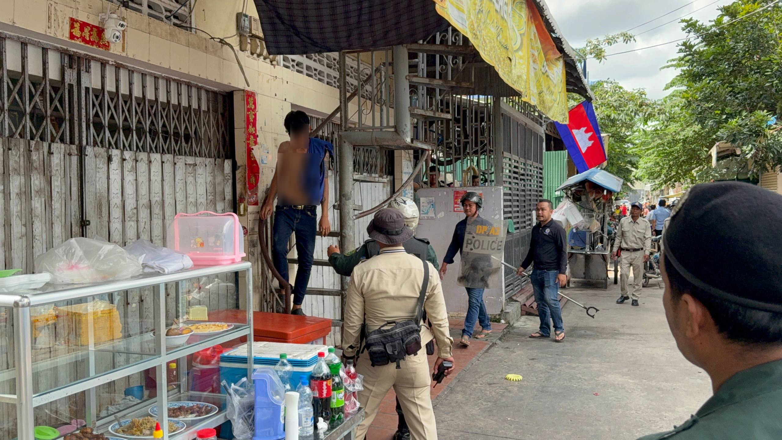 តាមការបញ្ជាក់ពីស្ត្រីជាម្តាយបានប្រាប់អោយដឹងថា ជនសង្ស័យបានរត់ចេញពីក្នុងផ្ទះដោយដៃមានកាន់កាំបិតចុងស្រួចជាប់នឹងដៃ ទាំងសងខាង ហើយបានដើរស្វែងរកកូនរបស់ខ្លួន បង្កអោយផ្អើលដល់ភ្លាមៗសមត្ថកិច្ចកំពុងល្បាតក្នុងមូលដ្ឋានប្រទះឃើញបានមកអន្តរាគមន៍ នឹង សួរនាំ ប៉ុន្តែជនសង្ស័យខាងលើបែរជាបម្រុងរត់គេច ក៏ត្រូវសមត្ថកិច្ចតាមចាប់ ស្របពេលនោះជនសង្ស័យបាន គ្រវៀសដៃបង្កអោយកាំបិតចុងស្រួច មុតដៃនគរបាលបញ្ជូនទៅមន្ទីរពេទ្យ ។ ខណៈជនសង្ស័យបានចាប់ម្តាយរបស់ខ្លួន អូសឡើងតាមជណ្តើរ ហើយក៏លែងម្តាយរបស់ខ្លួនវិញ ។ បន្ទាប់មកជនសង្ស័យបានឡើងទៅឈរនៅលើផ្ទះ រហូតដល់មានការលួងលោមពីសមត្ថកិច្ច ទើបជនសង្ស័យព្រមចុះមកក្រោមវិញដើម្បីប្រគល់ខ្លួនជូនសមត្ថកិច្ច ។