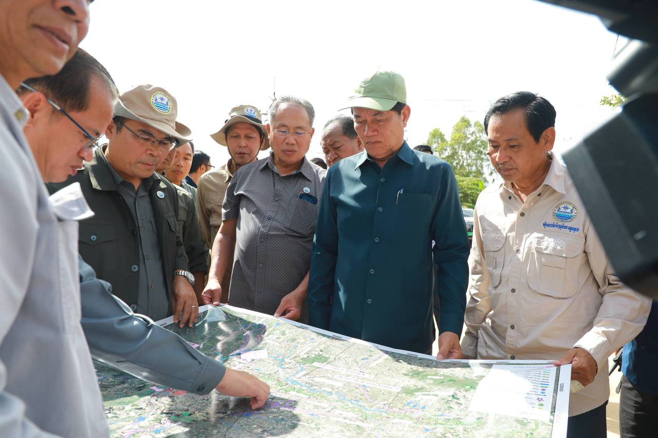 លោកអភិបាល និងរដ្ឋមន្ត្រីក្រសួងធនធានទឹក ដឹកនាំមន្ត្រីជំនាញចុះពិនិត្យដើម្បីកែប្រែប្រឡាយស្រោចស្រព ទៅជាប្រឡាយរំដោះទឹកចេញពីរាជធានីភ្នំពេញ