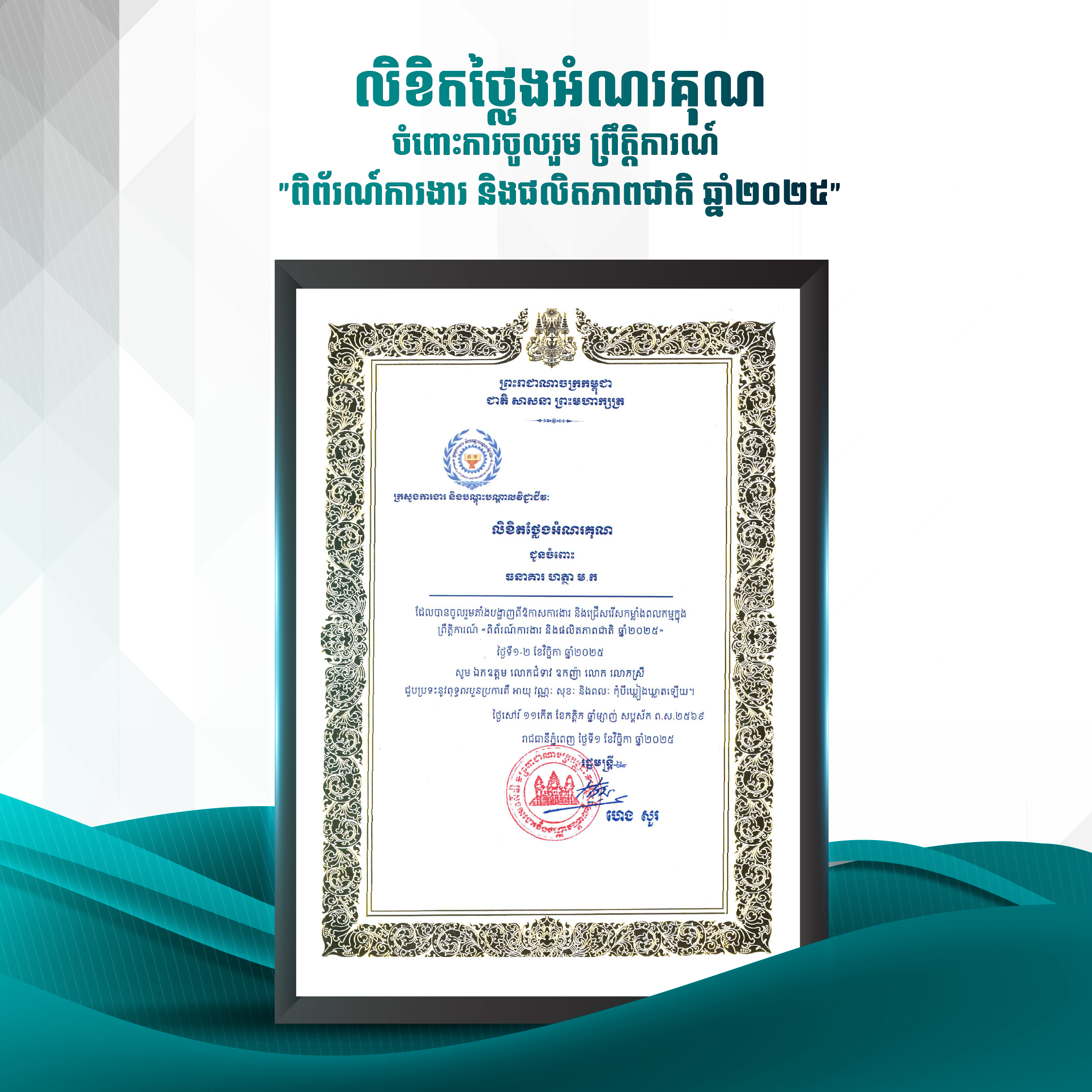 ធនាគារ ហត្ថា ចូលរួមការតាំងបង្ហាញពីឱកាសការងារក្នុងកម្មវិធី ពិព័រណ៍ការងារ និងផលិតភាពជាតិឆ្នាំ ២០២៥