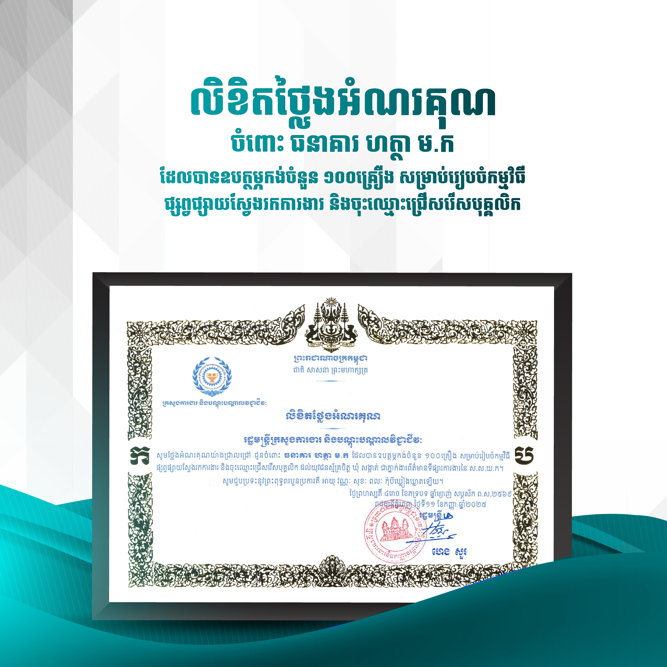 ក្នុងព្រឹត្តិការណ៍នេះ ធនាគារ ហត្ថា បានរៀបចំស្តង់ពិព័រណ៍ ដើម្បីបានជួបពិភាក្សាដោយផ្ទាល់ជាមួយបេក្ខជនទទួលពាក្យ និងអាចសម្ភាសន៍ដោយផ្ទាល់ជាមួយពួកគាត់ ដែលកំពុងស្វែងរកការងារ ។ ជាមួយគ្នានោះផងដែរ ធនាគារ ហត្ថា មានកិត្តិយសដ៏ខ្ពង់ខ្ពស់ទទួលលិខិតថ្លែងអំណរគុណពីឯកឧត្តម ហេង សួរ រដ្ឋមន្រ្តីក្រសួងការងារ និងបណ្តុះបណ្តាលវិជ្ជាជីវៈ ចំពោះការបរិច្ចាគកង់ចំនួន ១០០ គ្រឿង ដល់ក្រសួងដើម្បីលើកកម្ពស់សកម្មភាពផ្សព្វផ្សាយឱកាសការងារក្នុងស្រុក និងចុះឈ្មោះជ្រើសរើសបុគ្គលិក ។
