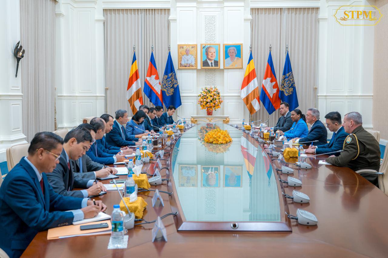 រាជធានីភ្នំពេញ ៖ សម្ដេចបវរធិបតី និងគណៈប្រតិភូសហរដ្ឋអាមេរិក បានពិភាក្សាគ្នាអំពីការបន្តពង្រឹង និងពង្រីកកិច្ចសហប្រតិបត្តិការរវាង កម្ពុជា-សហរដ្ឋអាមេរិក ឱ្យកាន់តែស៊ីជម្រៅ នៅក្នុងវិស័យគន្លឹះ ជាពិសេស វិនិយោគ និងពាណិជ្ជកម្ម បន្ទាប់ពីប្រទេសទាំងពីរបានចុះកិច្ចព្រមព្រៀងពាណិជ្ជកម្មបដិការ កាលពីថ្ងៃទី ២៦ ខែតុលា នៅទីក្រុងគូឡាឡាំពួ ។