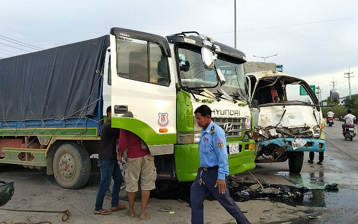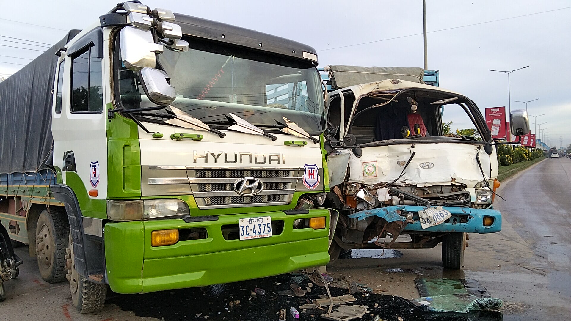 រាជធានីភ្នំពេញ ៖ រថយន្តដឹកទំនិញរបស់ក្រុមហ៊ុនពិភពដឹកជញ្ជូនមួយគ្រឿង បានបើកបុករថយន្តប្រភេទយីឌុបដឹកស្កសរមួយគ្រឿងបតឆ្លងផ្លូវពេញទំហឹង បណ្ដាលឱ្យអ្នកបើកបរទាំងពីររងរបួស ហើយរថយន្តទាំងពីរគ្រឿងរងការខូចខាតនៅកណ្ដាលផ្លូវ កកស្ទះចរាចរណ៍ជាច្រើនម៉ោង ។