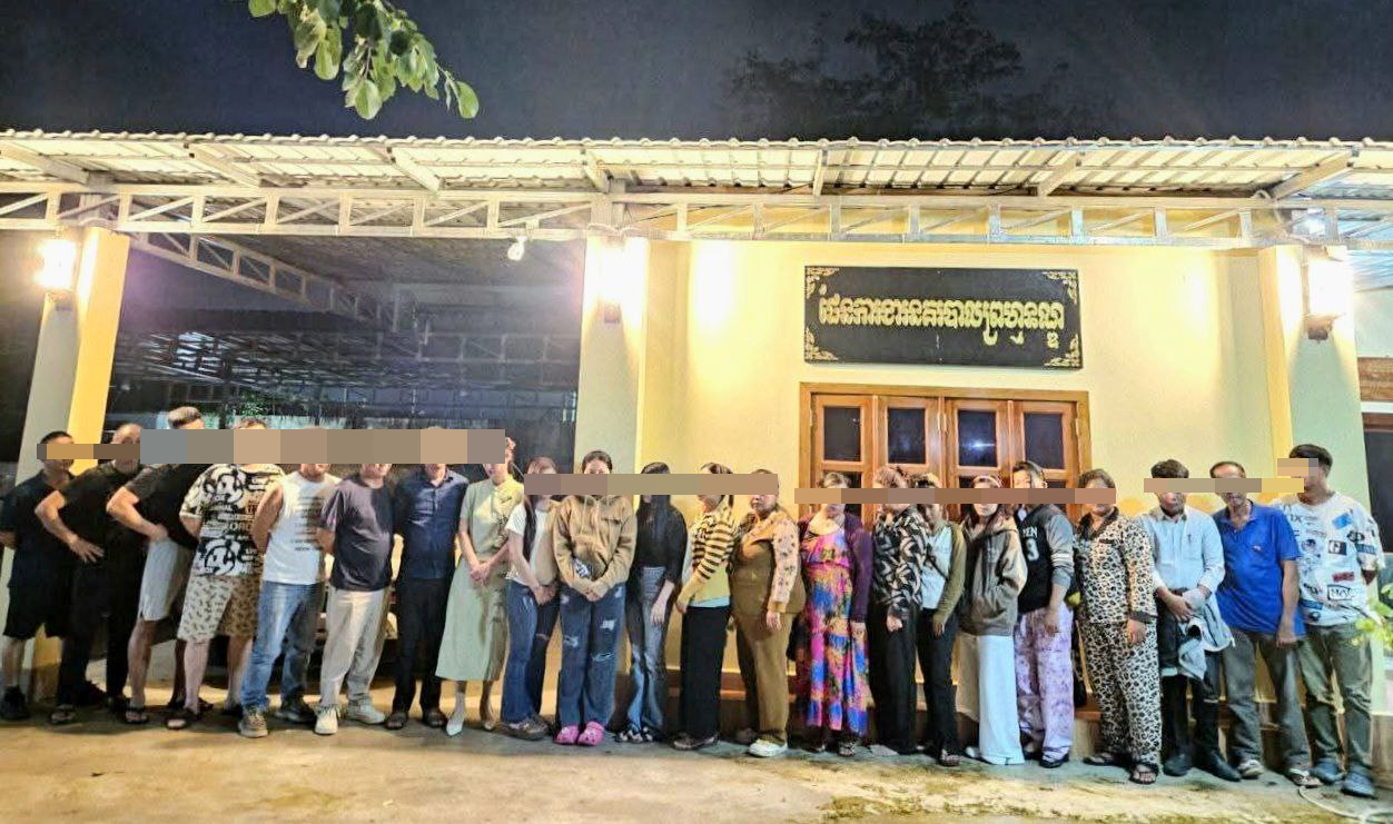 ការបង្ក្រាបទីតាំងល្បែងស៊ីសងខុសច្បាប់ ឃាត់មនុស្សជាង២០នាក់ កាលពីថ្ងៃទី០៣ ខែវិច្ឆិកា ឆ្នាំ២០២៥ នៅក្នុងភូមិសំបួរ សង្កាត់ច្បារមន ក្រុងច្បារមន ខេត្តកំពង់ស្ពឺ ។