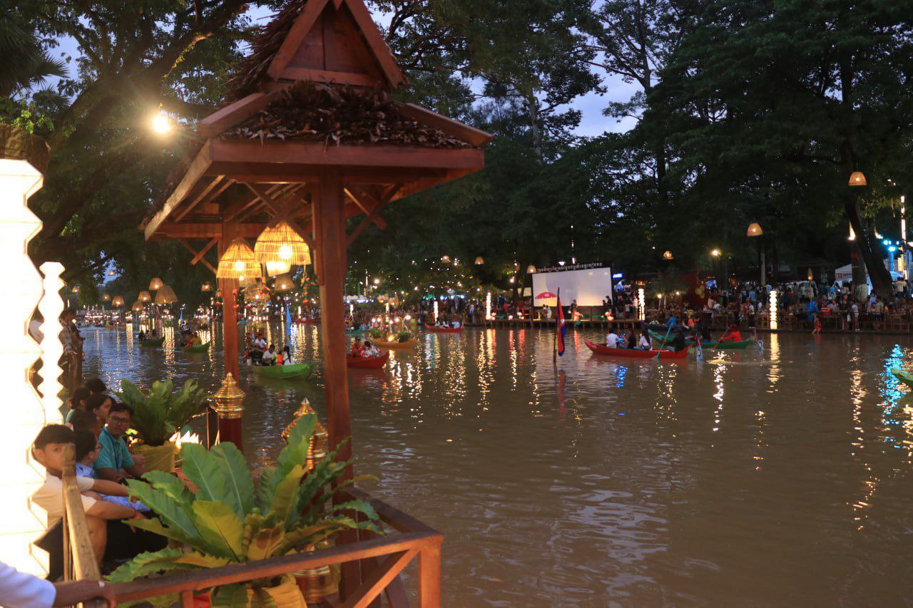 ដោយឡែក នៅរាត្រីថ្ងៃ១៥កើត ខែកត្តិក ត្រូវថ្ងៃទី ០៥ ខែ វិច្ឆិកា ឆ្នាំ២០២៥ នៅដងស្ទឹងប្រវត្តិសាស្ត្រសៀមរាប ក៏មានរៀបចំ បណ្តែតប្រទីប ដោយមានភ្ញៀវជាតិ អន្តរជាតិចូលរួម ជាច្រើនផងដែរ ។ ពិធីនេះបានទទួល ការគាំទ្រពីសំណាក់ប្រជាពលរដ្ឋគ្រប់ទិសទី ហើយតែងនាំគ្នាប្រារព្ធជារៀងរាល់ឆ្នាំ ដោយ មានការប្រណាំងអុំទូក ។ ពិធីបុណ្យអុំទូកនេះ ក៏បានភ្ជាប់នឹងពិធីផ្សេងៗ ទៀតផងដែរ គឺការបណ្ដែតប្រទីប សំពះព្រះខែ និង អកអំបុក ដែលជាការឆ្លុះបញ្ចាំងពីជំនឿសាសនាយ៉ាងមុតមាំ ។ ចំពោះការបណ្តែតប្រទីប គឺដើម្បីរម្លឹកដល់គុណនៃព្រះគង្គា និងព្រះធរណីដែលបានផ្ដល់នូវសេចក្ដីសុខសប្បាយ ភោគផលក្នុងការងារកសិកម្ម របរចិញ្ចឹមជីវិតប្រចាំថ្ងៃរបស់ប្រជាកសិករ ។