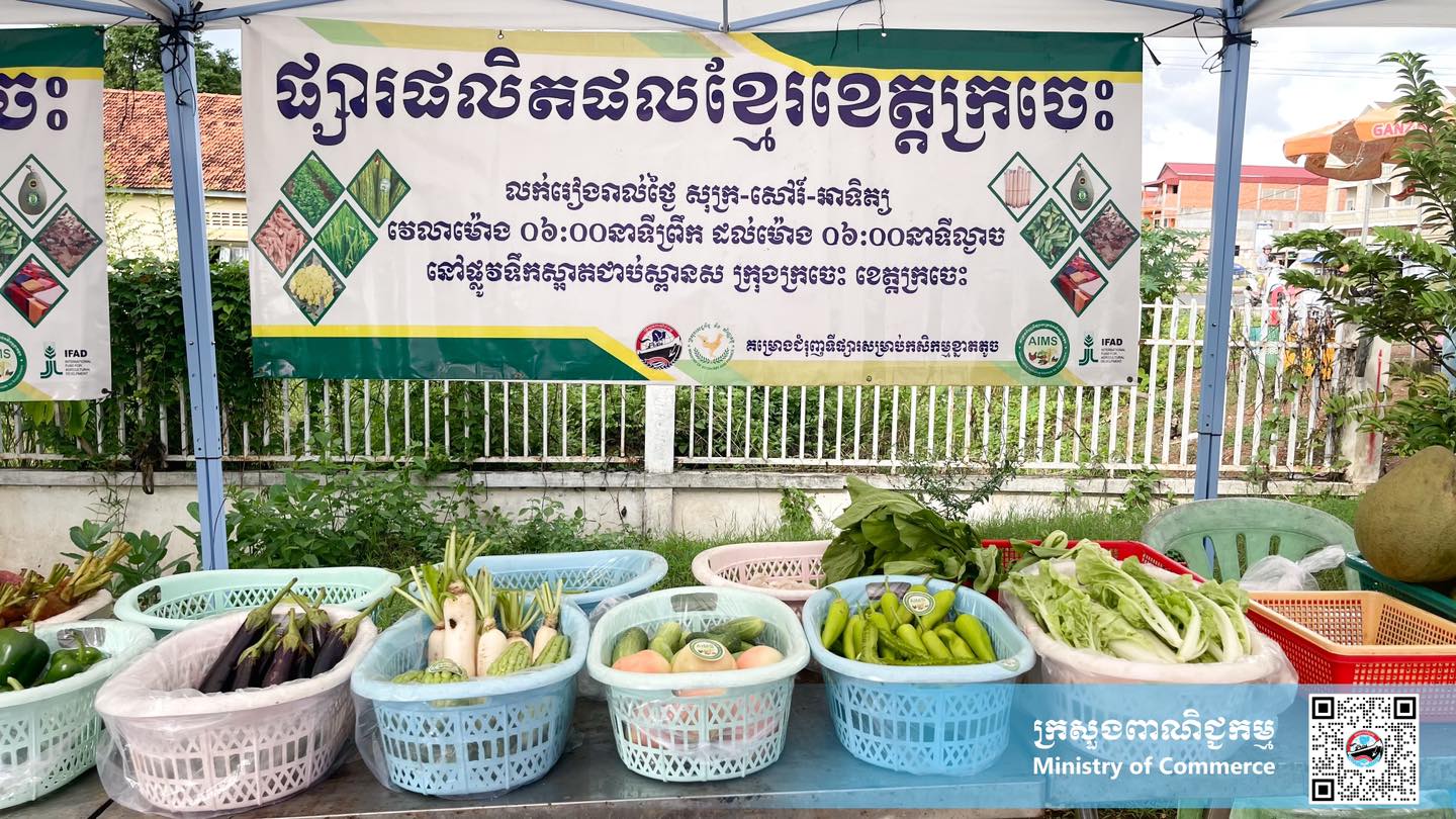 សូមបញ្ជាក់ថា ក្រោមការដឹកនាំ និងការគាំទ្ររបស់ក្រសួងពាណិជ្ជកម្ម និងការសម្របសម្រួលផ្តល់ទីតាំងរបស់រដ្ឋបាលខេត្ត មន្ទីរពាណិជ្ជកម្មខេត្តក្រចេះ ក្រោមគម្រោងជំរុញទីផ្សារសម្រាប់កសិកម្មខ្នាតតូច (AIMS) នៃក្រសួងពាណិជ្ជកម្ម បានរៀបចំ និងដាក់ឲ្យដំណើរការផ្សារលក់ផលិតផលខ្មែរ ចាប់តាំងពីឆ្នាំ២០១៩ រហូតមកដល់បច្ចុប្បន្ន ។