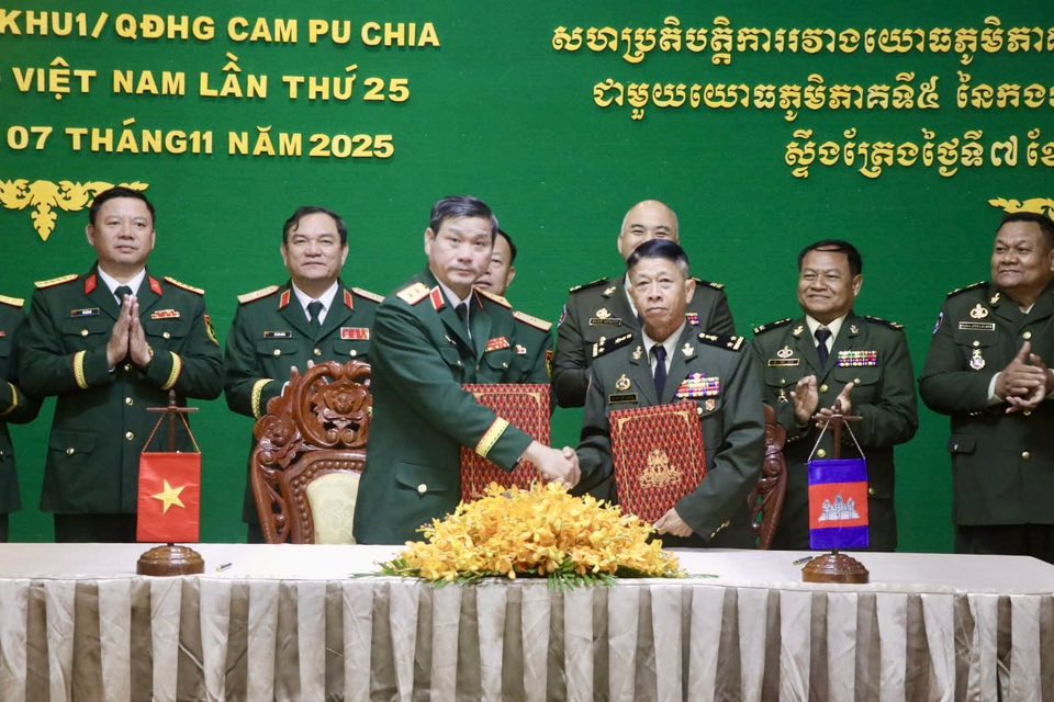 រាជធានីភ្នំពេញណ ៖ នៅថ្ងៃទី៧ ខែវិច្ឆិកា ឆ្នាំ២០២៥ នៅទីបញ្ជាការយោធភូមិភាគទី១ មានរៀបចំកិច្ចប្រជុំសហប្រតិបត្តិការប្រចាំឆ្នាំលើកទី២៥ រវាងអង្គភាពយោធភូមិភាគទី១នៃកងយោធពលខេមរភូមិន្ទកម្ពុជា ជាមួយយោធភូមិភាគទី៥ នៃកងទ័ពប្រជាជនវៀតណាម ដែលពិធីនេះ ប្រព្រឹត្តទៅក្រោមអធិបតីភាព ឯកឧត្តម ឧត្តមសេនីយ៍ទោ លី សូរ៉ារិទ្ធ មេបញ្ជាការយោធភូមិភាគទី១ និង ឯកឧត្តម ឧត្តមសេនីយ៍ទោ ឡេ ង៉ុកហាយ មេបញ្ជាការយោធភូមិភាគទី៥ នៃកងទ័ពប្រជាជនវៀតណាម ។ នេះបើយោងតាមផេកកងទ័ពជើងគោកនៃកងយោធពលខេមរភូមិន្ទ ។