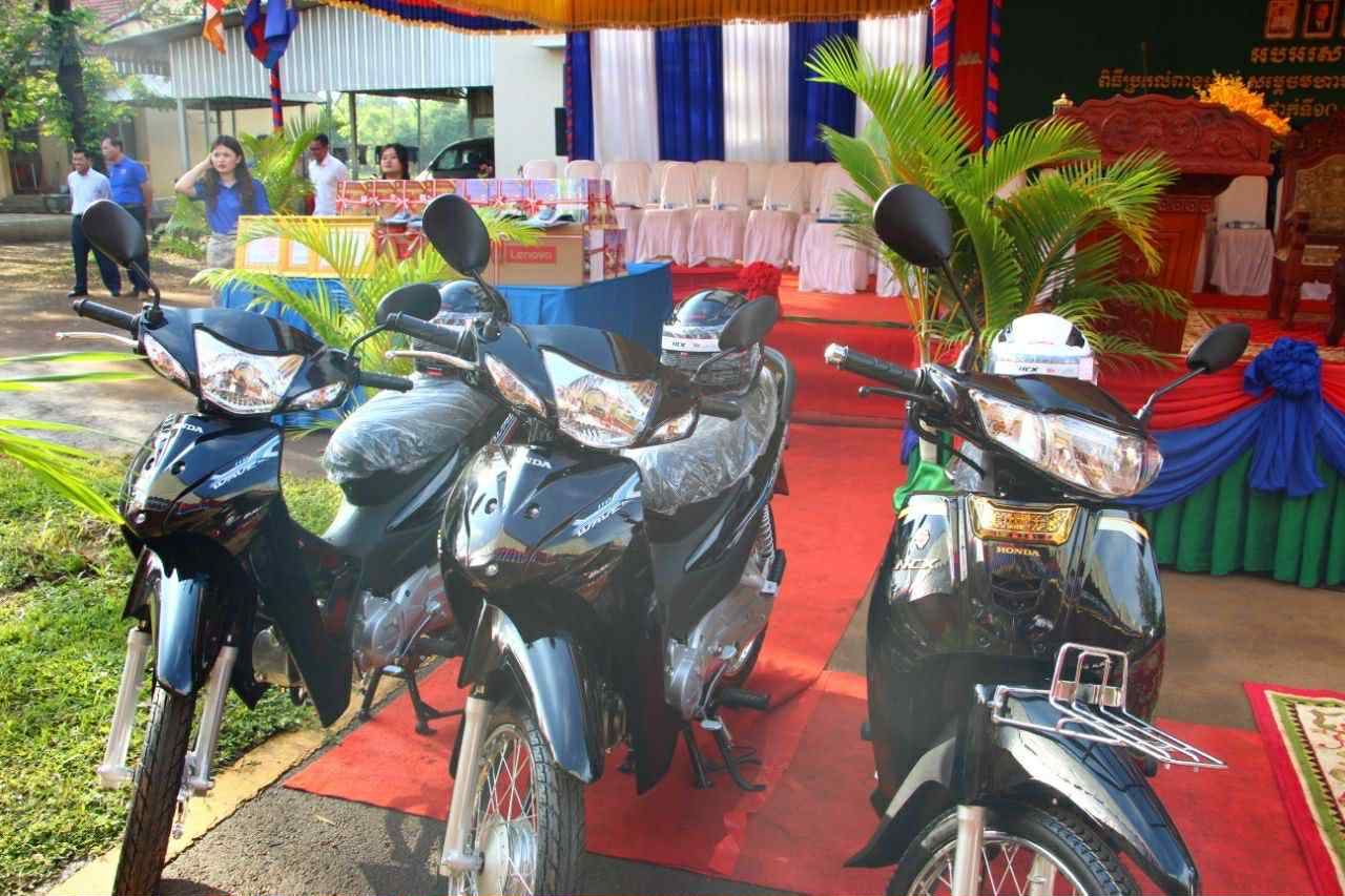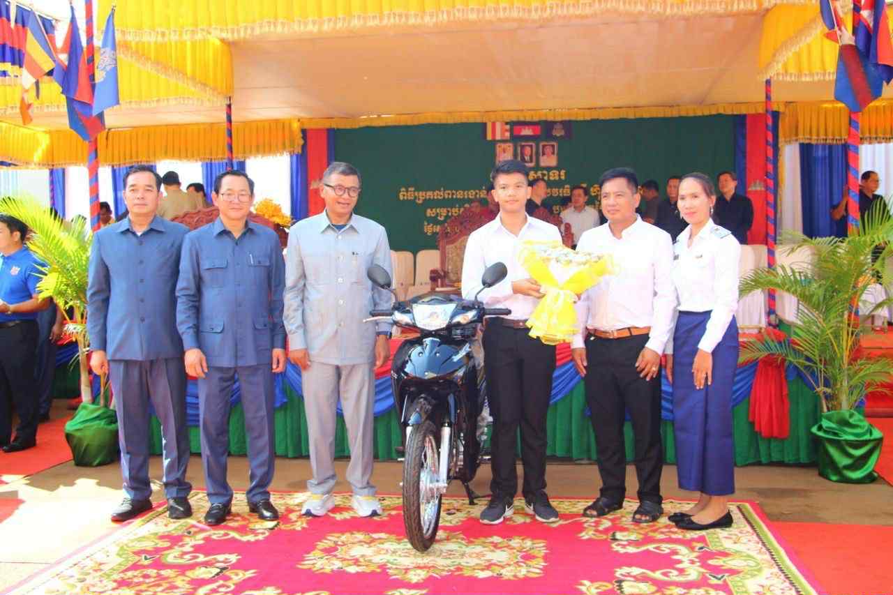 សូមបញ្ជាក់ថា សិស្សពូកែប្រឡងជាប់ទទួលបានចំណាត់ថ្នាក់លេខមួយគឺមានប័ណ្ណសរសើរមួយសន្លឹក ចេញដោយរដ្ឋមន្ត្រីក្រសួងអប់រំ ម៉ូតូម៉ាកC125 មួយគ្រឿង ថវិកាមួយលានរៀល សៀវភៅពីរឈុត ចំណាត់ថ្នាក់លេខ២ ទទួលបានប័ណ្ណសរសើរមួយសន្លឹក ម៉ូតូវ៉េវមួយគ្រឿងថវិកាមួយលានរៀល សៀវភៅពីរឈុត ចំណាត់ថ្នាក់លេខ៣ ទទួលបានប័ណ្ណសរសើរមួយសន្លឹក ម៉ូតូវ៉េវមួយគ្រឿង ថវិកាមួយលានរៀល សៀវភៅពីរឈុត។