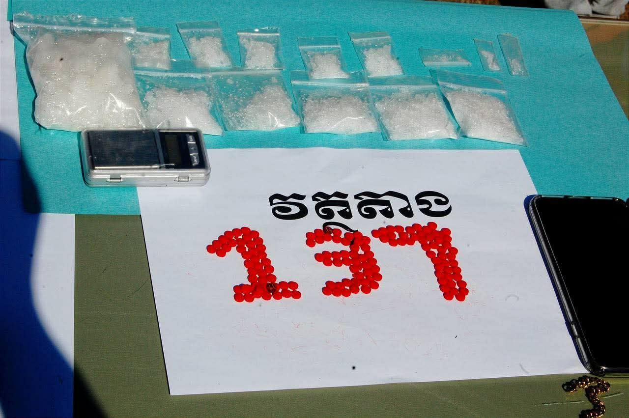 ហ្វេតាមីនគ្រាប់ ១៣៧ គ្រាប់ ទម្ងន់ ១២.៧៥ ក្រាម។ សរុបចំនួន១៦៩.៤៥ កក្រាម។ ទូរសព្ទដៃ ១១គ្រឿង, លោហធាតុគ្រឿងអលង្ការ០៣មុខ, កូនកាំបិត, ដាវ, ស្នា, ជញ្ជីងថ្លឹងគ្រឿងញៀន និងសម្ភារប្រើប្រាស់គ្រឿងញៀនមួយចំនួនទៀត ។
