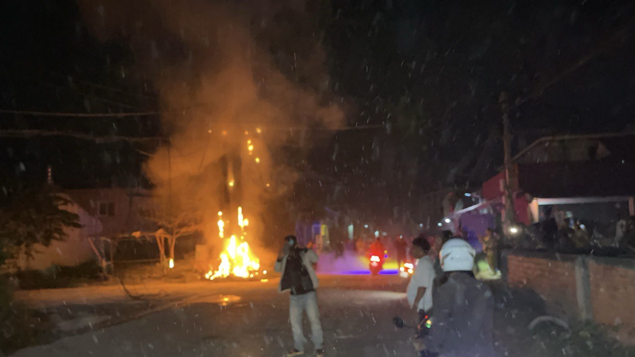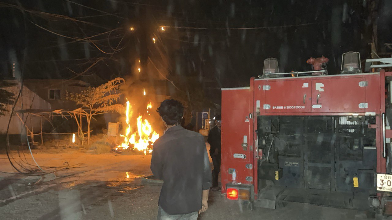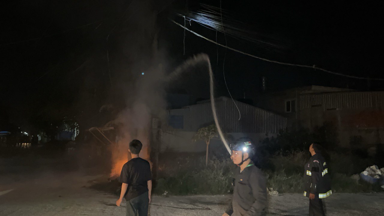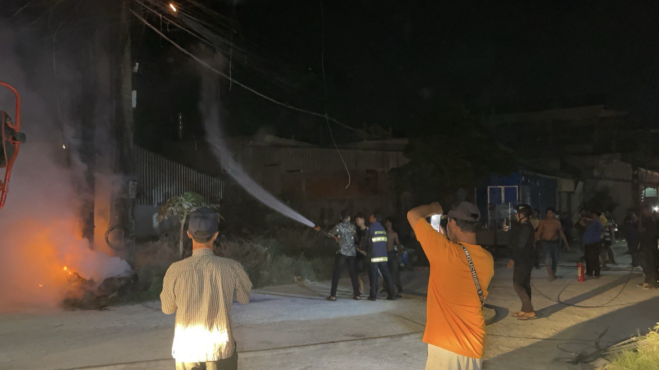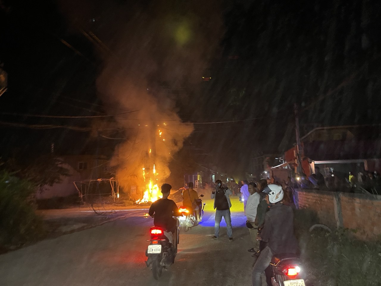 ក្រោយឮសំឡេងផ្ទុះ ក៏មានអណ្តាតភ្លើងឆាបឆេះបង្គោលភ្លើង១ដើម ផ្អើលមុខវត្តកំពែង