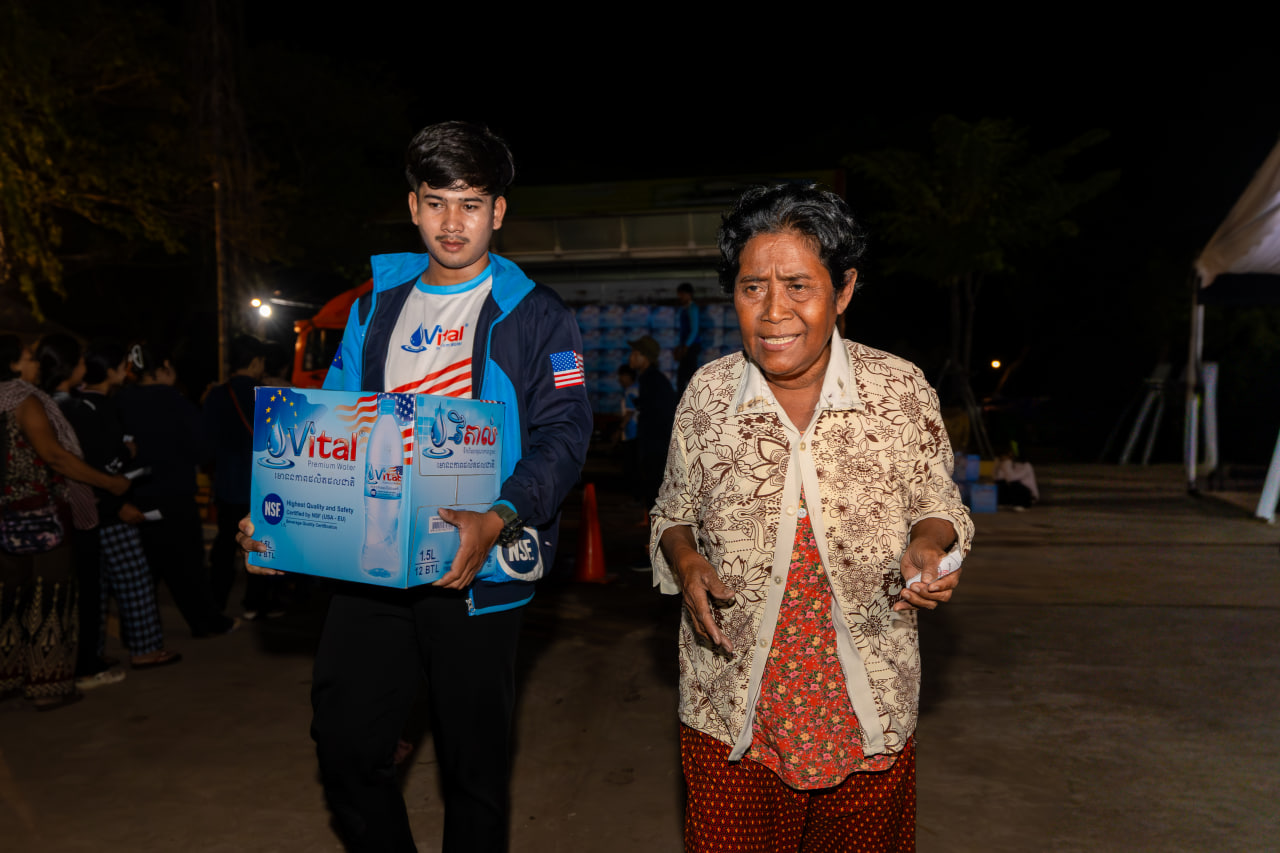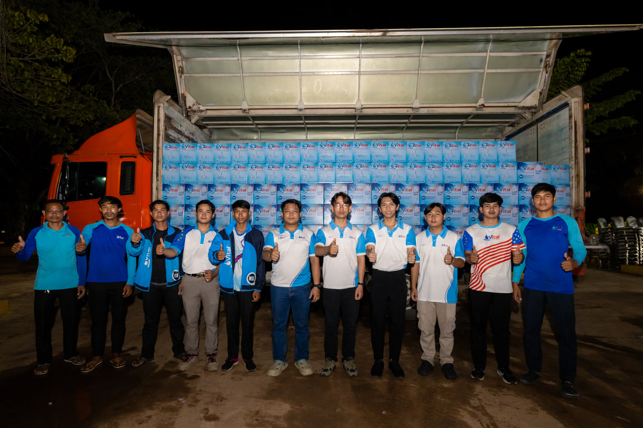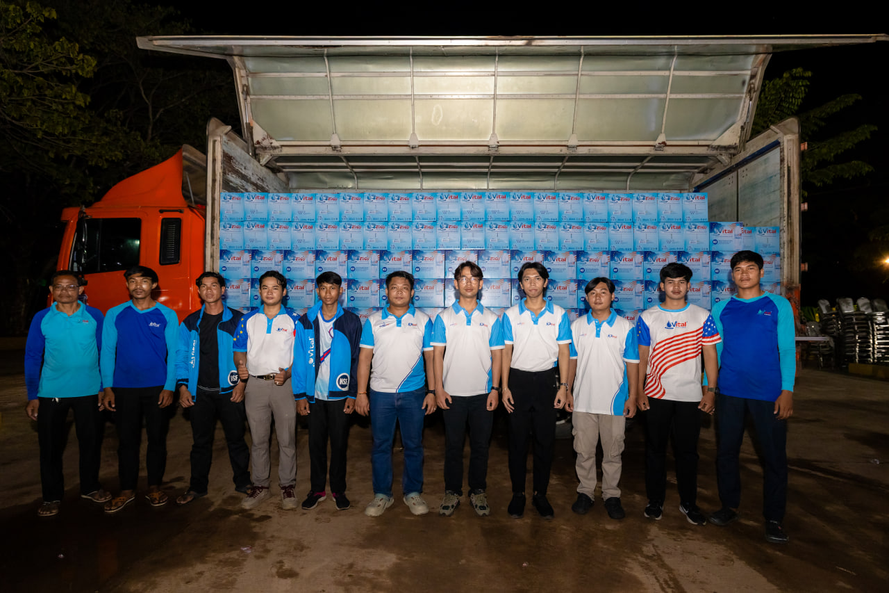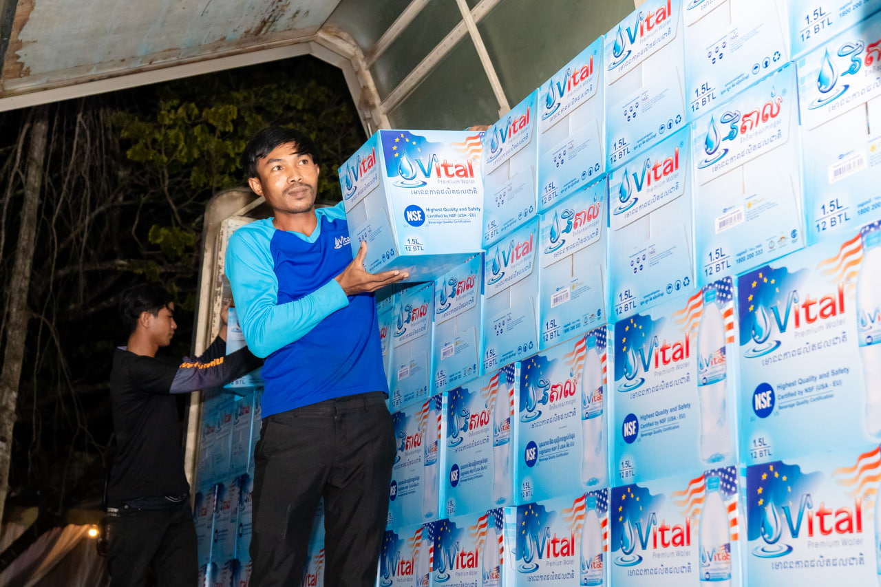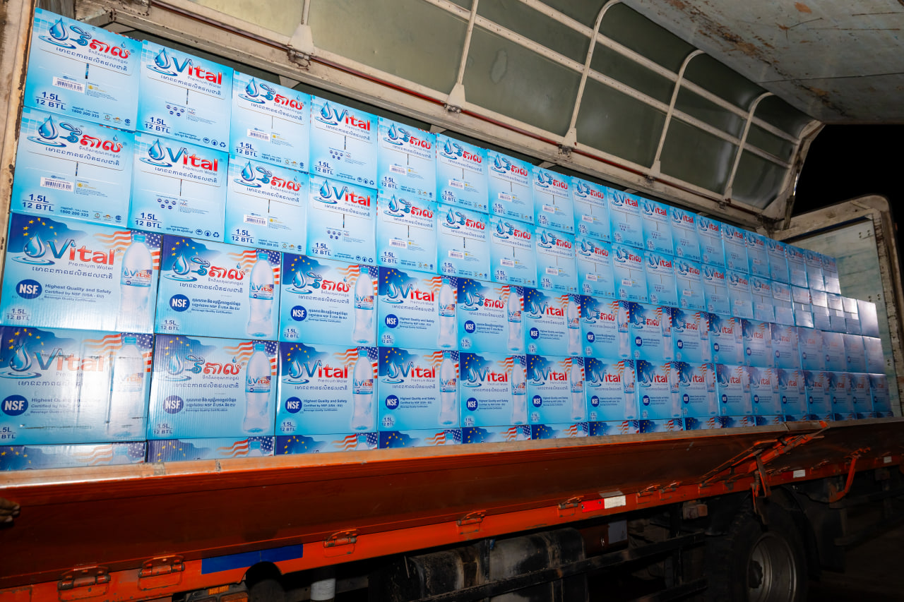 រួមសុខរួមទុក្ខ ! វីតាល់ នាំយកទឹកបរិសុទ្ធចែកជនភៀសសឹក ដល់ជំរុំទាំងយប់