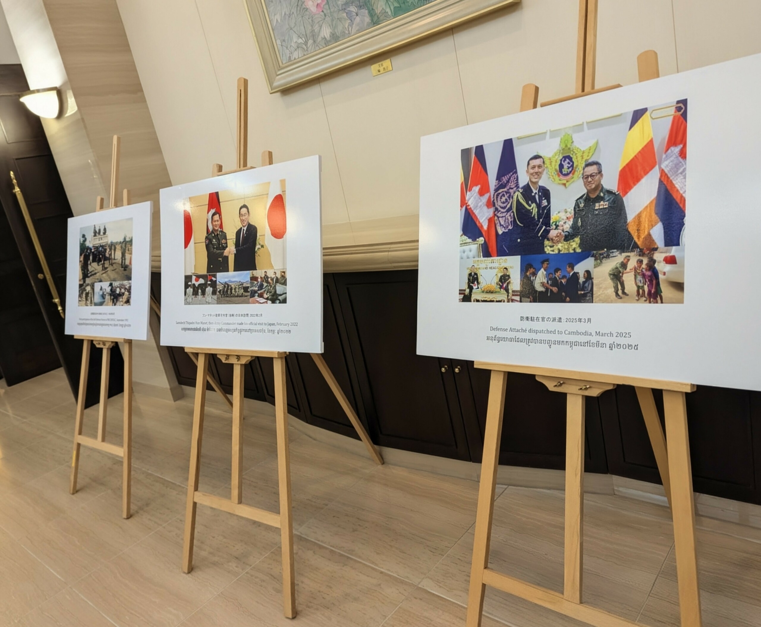 ថ្លែងក្នុងពិធីអបអរសាទរខួបលើកទី៧១ នៃការបង្កើតកងកម្លាំងស្វ័យការពារជាតិជប៉ុន ដែលបានប្រារព្ធធ្វើឡើង នាព្រលប់ថ្ងៃទី១៤ ខែវិច្ឆិកា ឆ្នាំ២០២៥ ក្នុងបរិវេណស្ថានទូតជប៉ុនប្រចាំកម្ពុជា, ឯកឧត្តម អ៊ូអិណុ អាត់ស៊ូស៊ី ឯកអគ្គរាជទូតវិសាមញ្ញ និង ពេញសមត្ថភាពរបស់ប្រទេសជប៉ុនប្រចាំព្រះរាជាណាចក្រកម្ពុជា បានលើកឡើងថាក្នុងនាមរដ្ឋាភិបាលជប៉ុន យើងនឹងជំរុញបន្ថែមទៀតនូវកិច្ចសហប្រតិបត្តិការសន្តិសុខ ជាមួយកម្ពុជា ដើម្បីរក្សានូវសន្ទុះដែលបានបង្កើតឡើងក្នុងរយៈពេលប៉ុន្មានឆ្នាំចុងក្រោយនេះ។