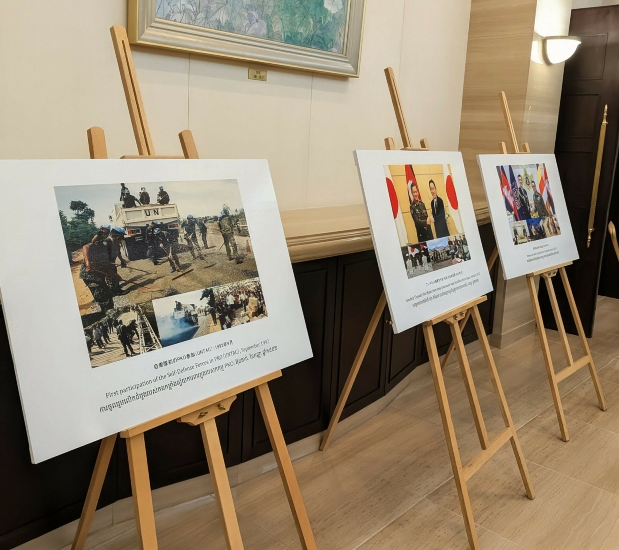 ជាមួយគ្នានោះ ឯកឧត្តម ឯកអគ្គរាជទូតជប៉ុន បានថ្លែងគូសបញ្ជាក់ថា ឧទាហរណ៍គួរឱ្យកត់ សម្គាល់មួយនៃកិច្ចសហប្រតិបត្តិការនេះ គឺការចូលរួមជាមួយកងកម្លាំងរក្សាសន្តិភាពអង្គការសហប្រជាជាតិ (UNPKO) ហើយកម្ពុជាដែលធ្លាប់ជាប្រទេសទទួល ជំនួយពីកងកម្លាំងរក្សាសន្តិភាពអង្គការសហប្រជាជាតិ ឥឡូវនេះក្លាយជាប្រទេសបញ្ជូនកងកម្លាំងរក្សាសន្តិភាពដ៏សំខាន់មួយ ដែលរួមចំណែកដល់ការកសាងសន្តិភាពនៅជុំវិញពិភពលោក។ កងកម្លាំងស្វ័យការពារជាតិរបស់យើង បានគាំទ្រសកម្មភាពទាំងនេះអស់រយៈ ពេលជាច្រើនឆ្នាំ ដោយផ្តល់ការបណ្តុះបណ្តាលផ្សេងៗដល់អង្គភាពកងកម្លាំងរក្សាសន្តិភាពរបស់កម្ពុជា។ លើសពីនេះ ជប៉ុន និងកម្ពុជា កំពុងសហការគ្នាជាដៃគូក្នុងការដោះមីន ហើយថ្មីៗនេះ ការបណ្តុះបណ្តាលរួមគ្នាសម្រាប់មន្ត្រីជំនាញដោះមីនអ៊ុយក្រែន ក៏ត្រូវបានទទួល ការវាយតម្លៃខ្ពស់ដោយសហគមន៍អន្តរជាតិ។