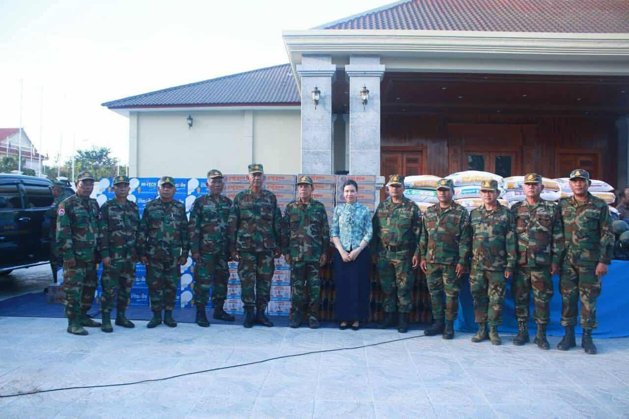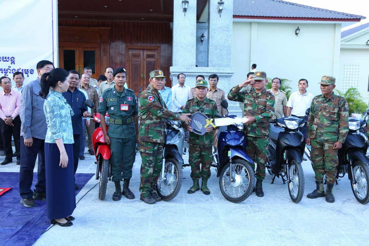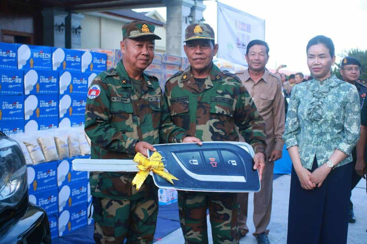 ហើយក្នុងឱកាសនោះ នាយឧត្ដមសេនីយ៍ អ៊ី ឈាន និងលោកជំទាវ បាន ស្រីមុំ ក៏បានផ្តល់អំណោយរថយន្តចំនួន០៣គ្រឿង ទោចក្រយានយន្ត ចំនួន២១គ្រឿង រួមទាំងសម្ភារៈបរិក្ខា ស្បៀងអាហារ និងថរិកា ជូនដល់បណ្តាអង្គភាពកងកំលាំងជួរមុខ ដែលកំពុងតែឈរជើងការពារបូរណភាពទឹកដី នៅតាមបន្ទាត់ព្រំដែន និងកម្លាំងចល័ត អន្តរាគមន៍ការពារសន្តិសុខសណ្តាប់ធ្នាប់តាមមូលដ្ឋាន គ្រប់អង្គភាព នៃកងកម្លាំងចម្រុះគណៈបញ្ជាការខេត្តប៉ៃលិនផងដែរ៕