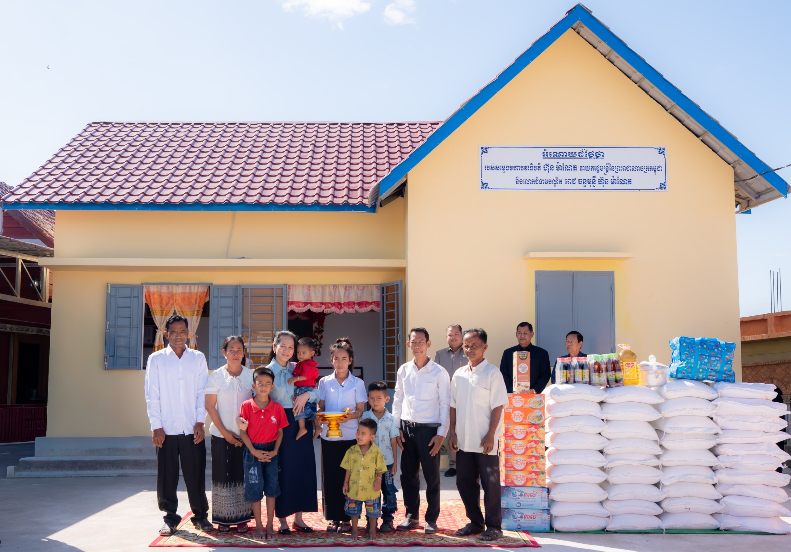 ផ្ទះថ្មី ដែលបានសាងសង់ក្នុងទំហំ ៧ គុណ៩ ម៉ែត្រ នេះ គឺជាអំណោយរបស់សម្តេចមហាបវរធិបតី ហ៊ុន ម៉ាណែត នាយករដ្ឋមន្ត្រី និងលោកជំទាវបណ្ឌិត ពេជ ចន្ទមុន្នី ហ៊ុនម៉ាណែត។ ផ្ទះនេះមានបន្ទប់គេង ២ បន្ទប់ទទួលភ្ញៀវ ១ ផ្ទះបាយ និងបង្គន់អនាម័យ ។