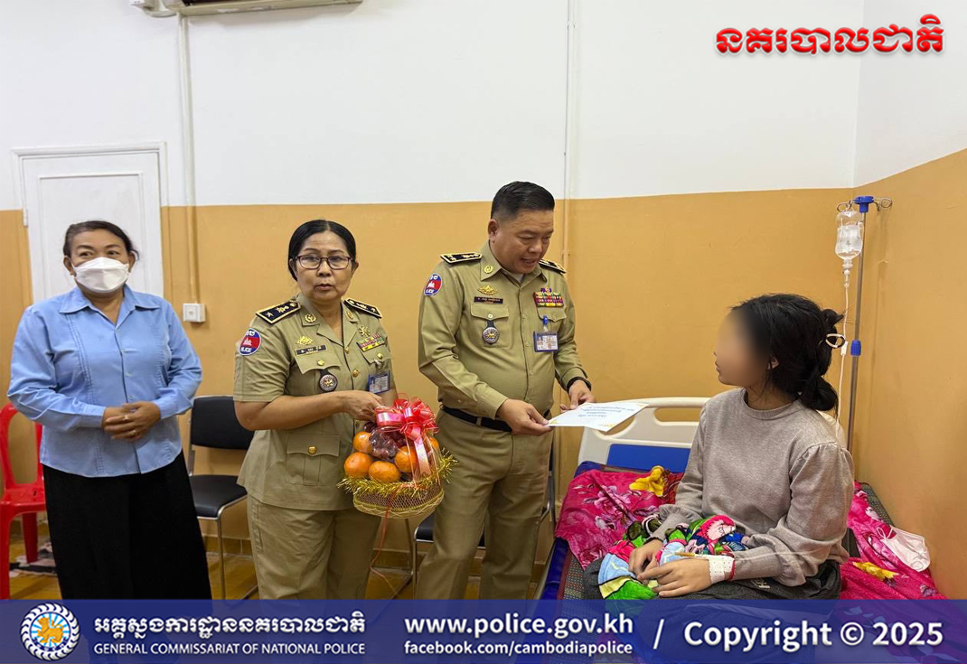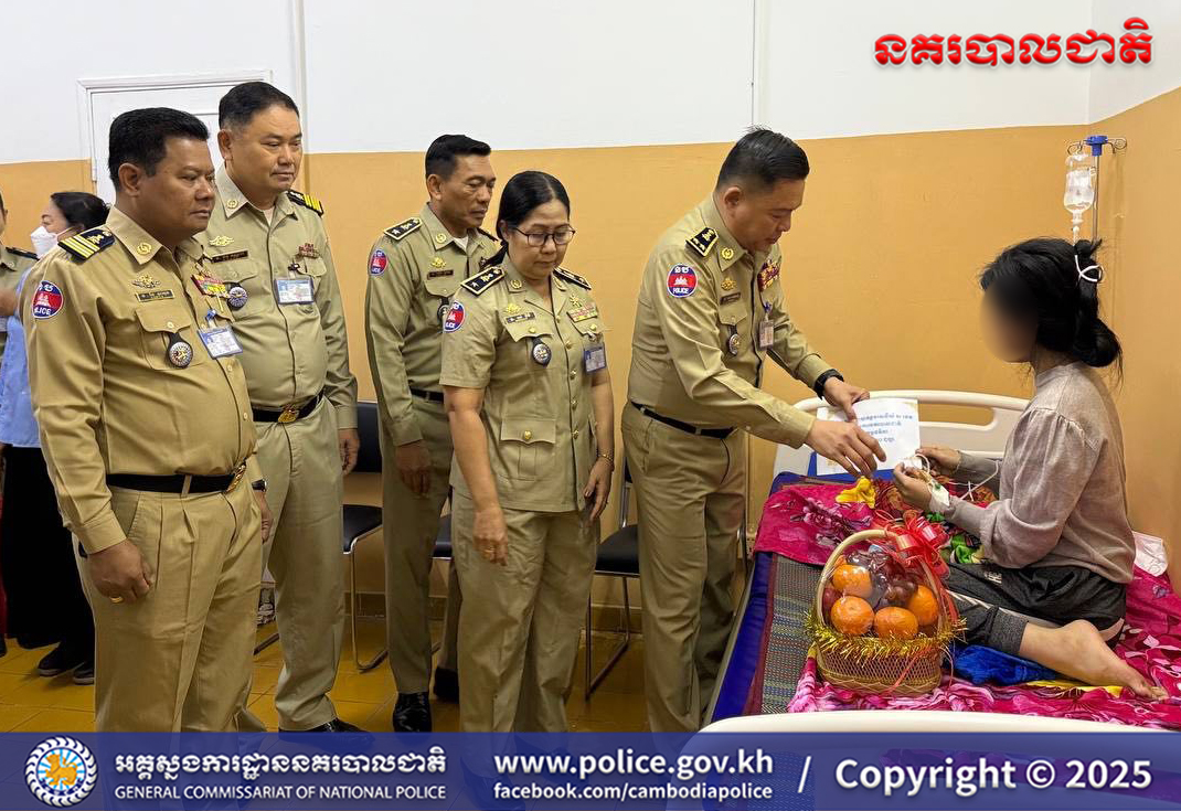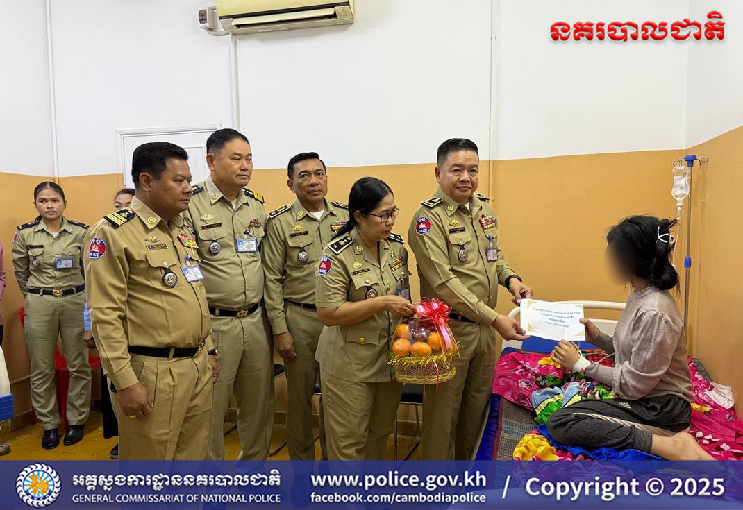 លោកឧត្តមសេនីយ៍ទោ ដាញ់ អេងប៊ុនចាន់ បន្តថា ដោយមើលឃើញពីអំពើអមនុស្សធម៌ពីសំណាក់ទាហានឈុតខ្មៅថៃមកលើនារីរងគ្រោះ នៅព្រឹកថ្ងៃទី១៧ ខែវិច្ឆិកា ឆ្នាំ២០២៥ នេះ ឯកឧត្តម នាយឧត្តមសេនីយ៍ ស ថេត អគ្គស្នងការនគរបាលជាតិ បានចាត់រូបលោកនាំយកថវិកាចំនួន៣០០០ដុល្លារ និងផ្លែឈើ១កន្ត្រក ទៅសួរសុខទុក្ខនារីរងគ្រោះដែលកំពុងសម្រាកនៅមន្ទីរពេទ្យខេត្តបាត់បង ។