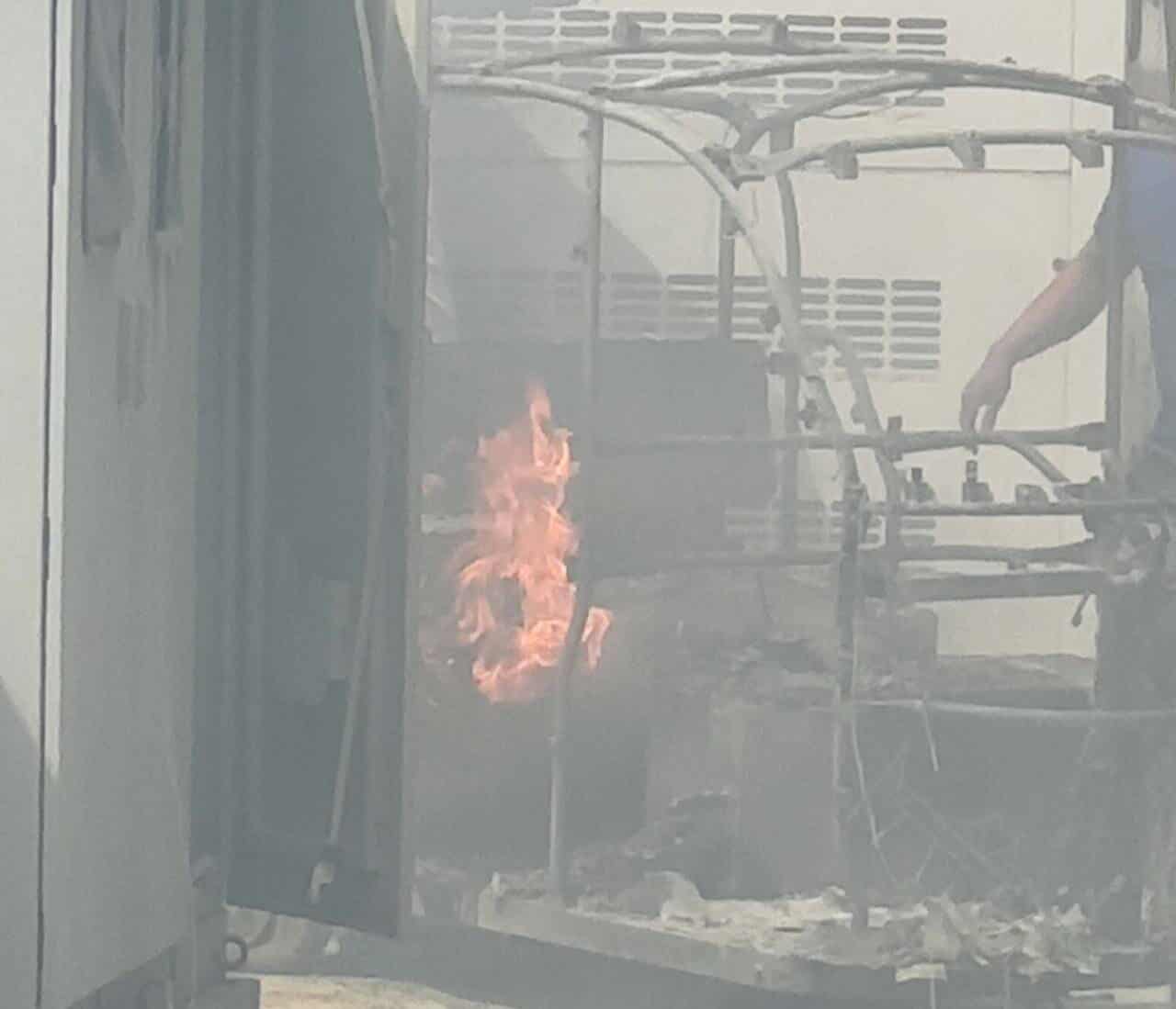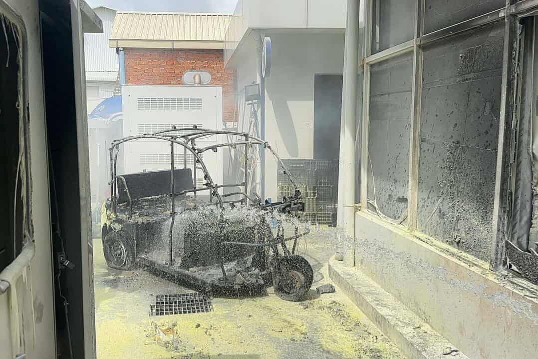 នៅក្នុងហេតុការណ៍នោះដែរ សមត្ថកិច្ចបានចេញរថយន្តពន្លត់អគ្គិភ័យមួយគ្រឿង ទៅអន្តរាគមន៍បាញ់ពន្លត់ ហើយភ្លើងបានរលត់ទៅវិញពុំបណ្ដាឲ្យឆេះរាលដាលឡើយ ។ តាមព័ត៌មានឲ្យដឹងថា នៅមុនពេលកើតហេតុ ម្ចាស់បានយកម៉ូតូកង់បីប្រើថាមពលអគ្គិសនីរបស់ខ្លួនឆ្លងចរន្តទៅជួសជុលនៅក្រុមហ៊ុន ខណៈនោះមិនទាន់បានជួសជុលផងស្រាប់តែភ្លើងបានឆាបឆេះតែម្ដង។