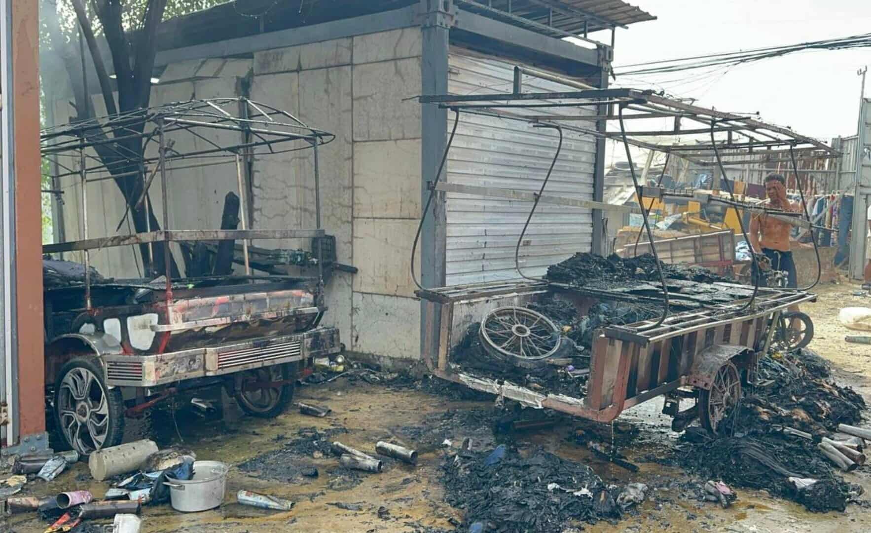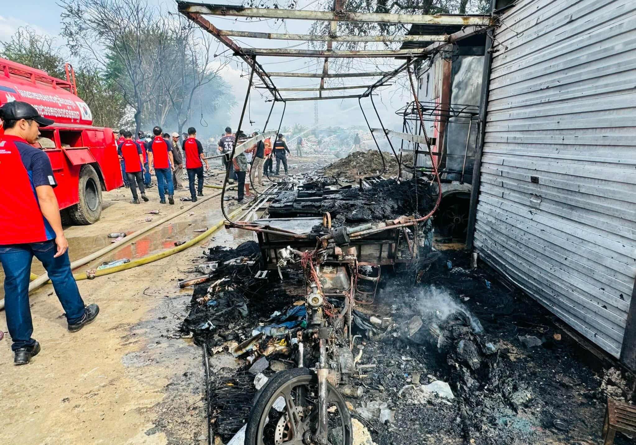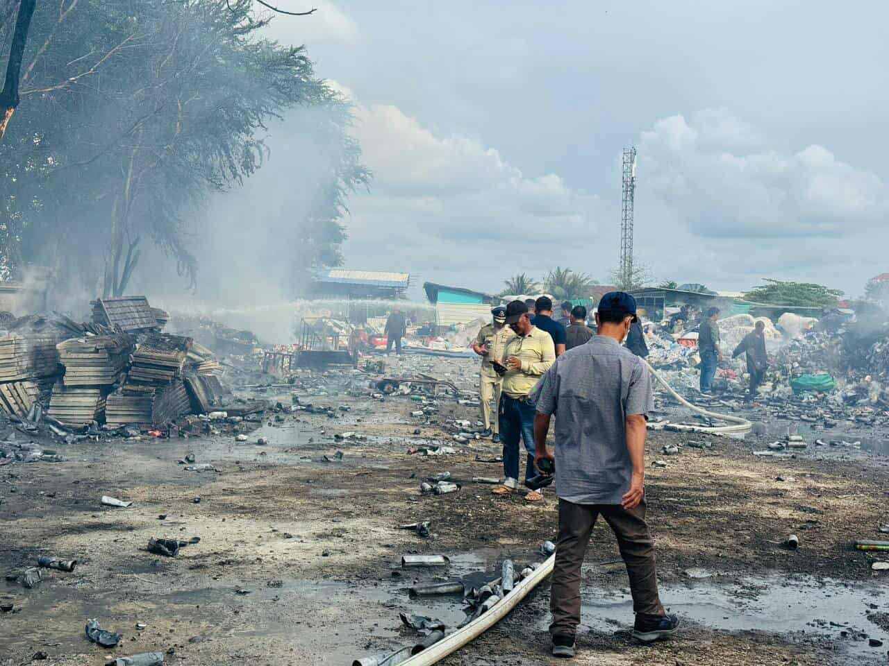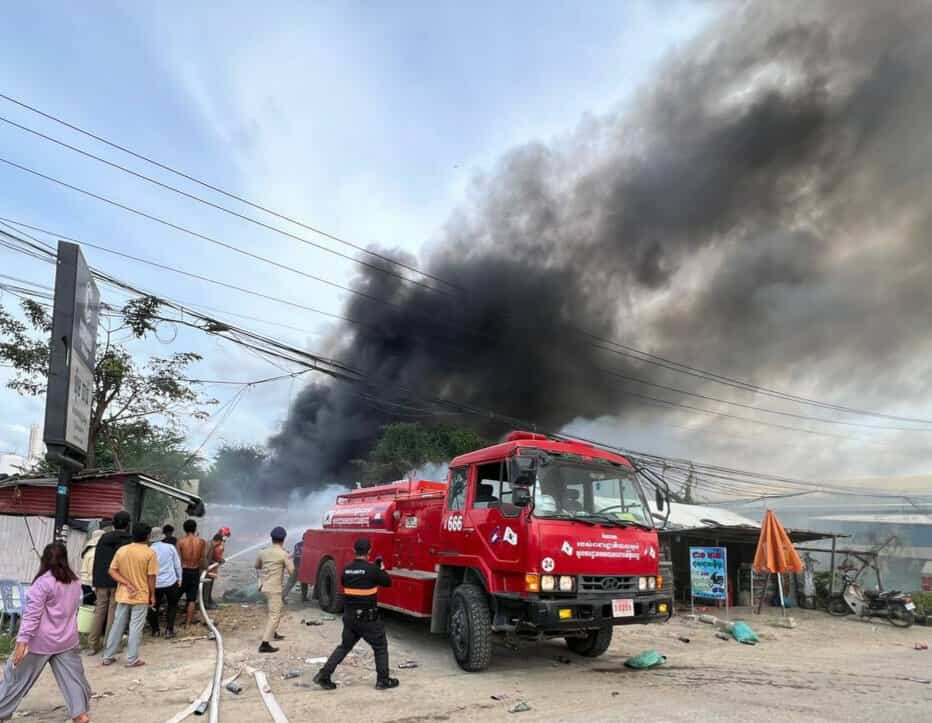 រាជធានីភ្នំពេញ ៖ រោងស្តុកអេតចាយ និងស្នាក់នៅរបស់កម្មករមួយកន្លែង នៅតាមផ្លូវ២១៧ ក្នុងភូមិជើងឯក សង្កាត់ជើងឯក ខណ្ឌដង្កោ រាជធានីភ្នំពេញ ត្រូវបានអគ្គិភ័យឆាបឆេះយ៉ាងសន្ធោសន្ធៅ…