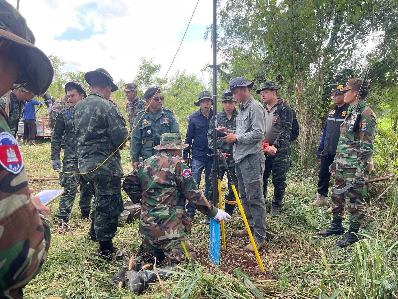 ក្រុមការងារបោះបង្គោលបណ្តោះអាសន្ន នៅកំណាត់ខ្សែព្រំដែនចន្លោះបង្គោលលេខ៥២ និងលេខ៥៩ ស្ថិតក្នុងភូមិសាស្ត្រស្រុកកំរៀងខេត្តបាត់ដំបងរបស់កម្ពុជា ជាប់នឹងខេត្តចាន់បុរីរបស់ថៃ ។