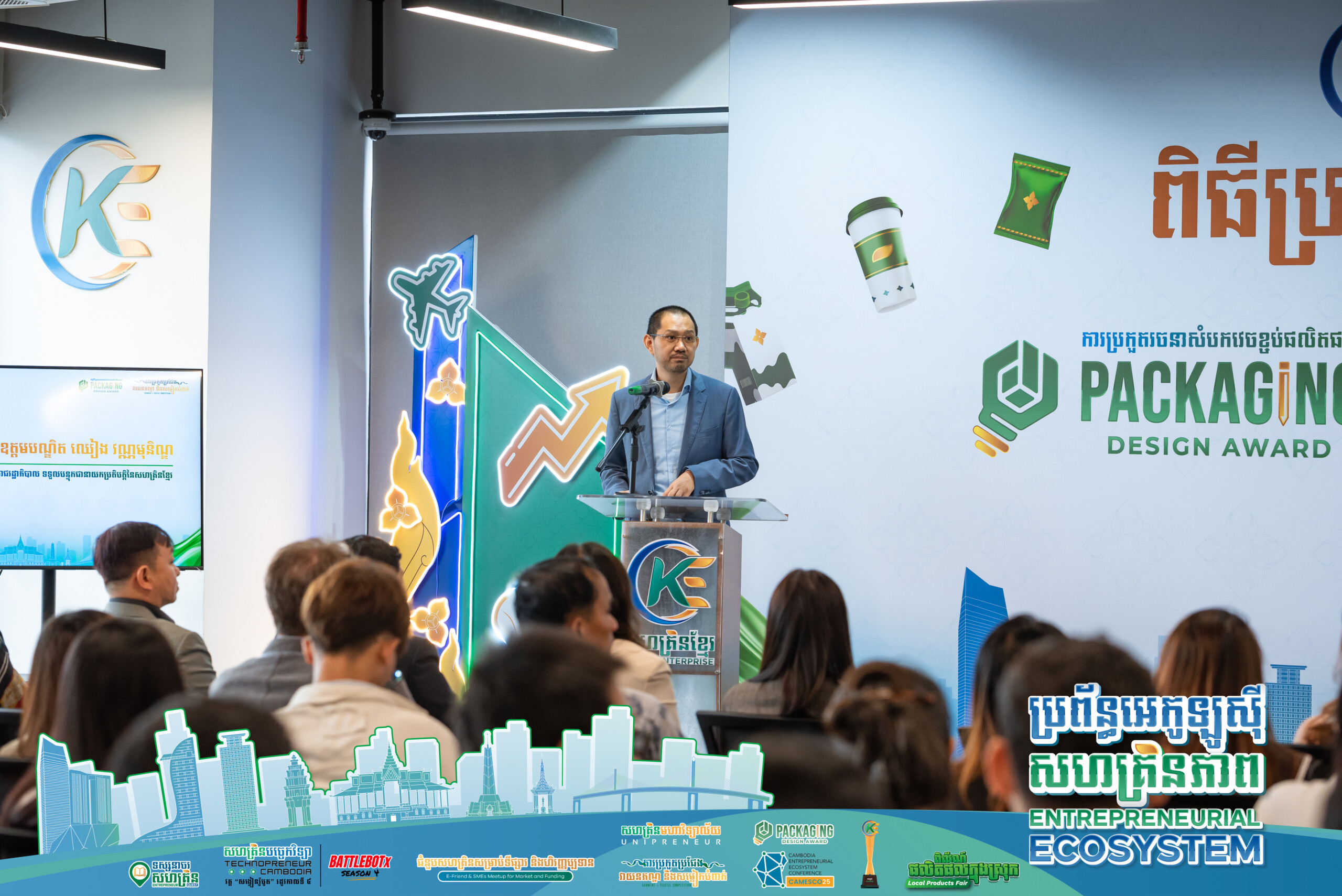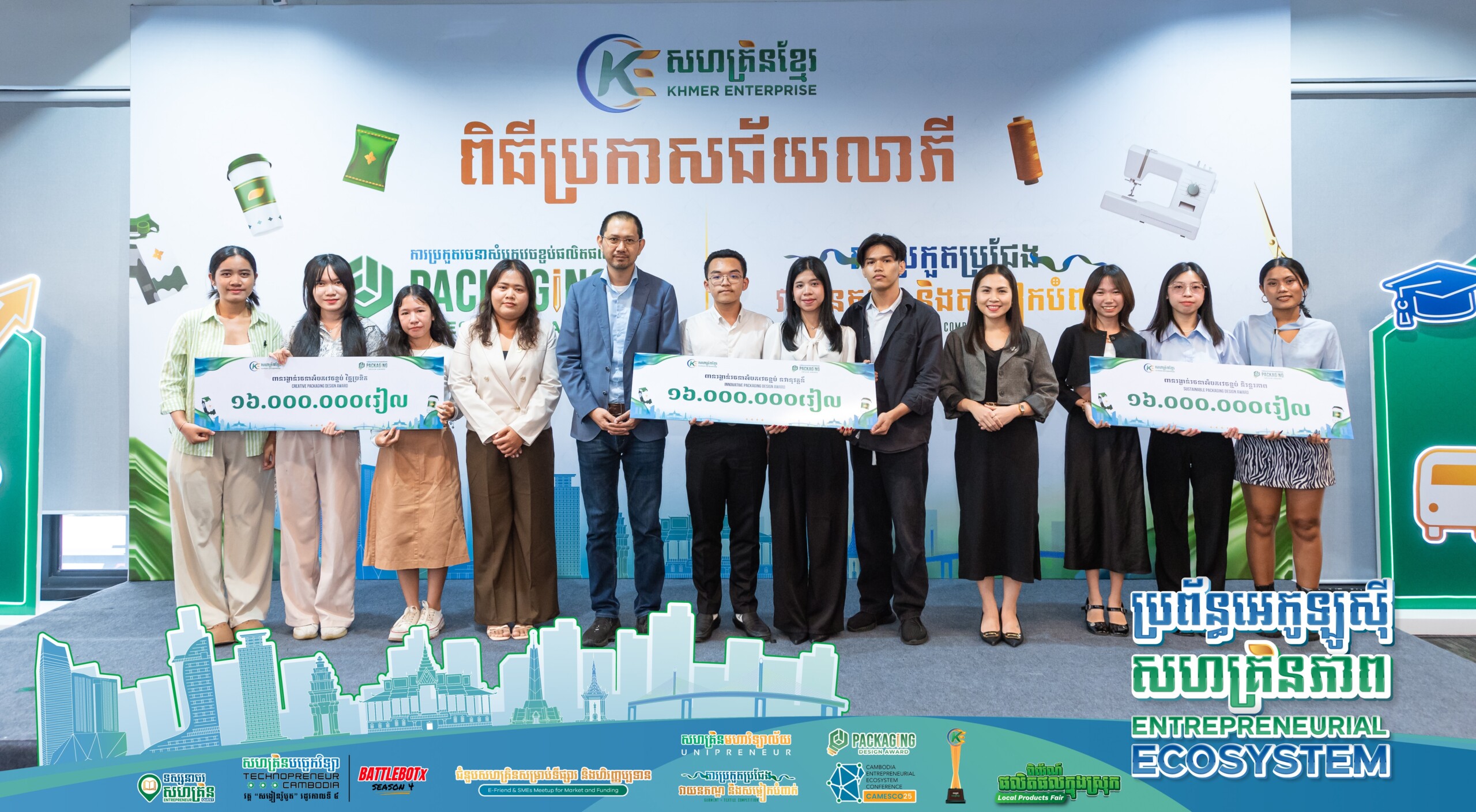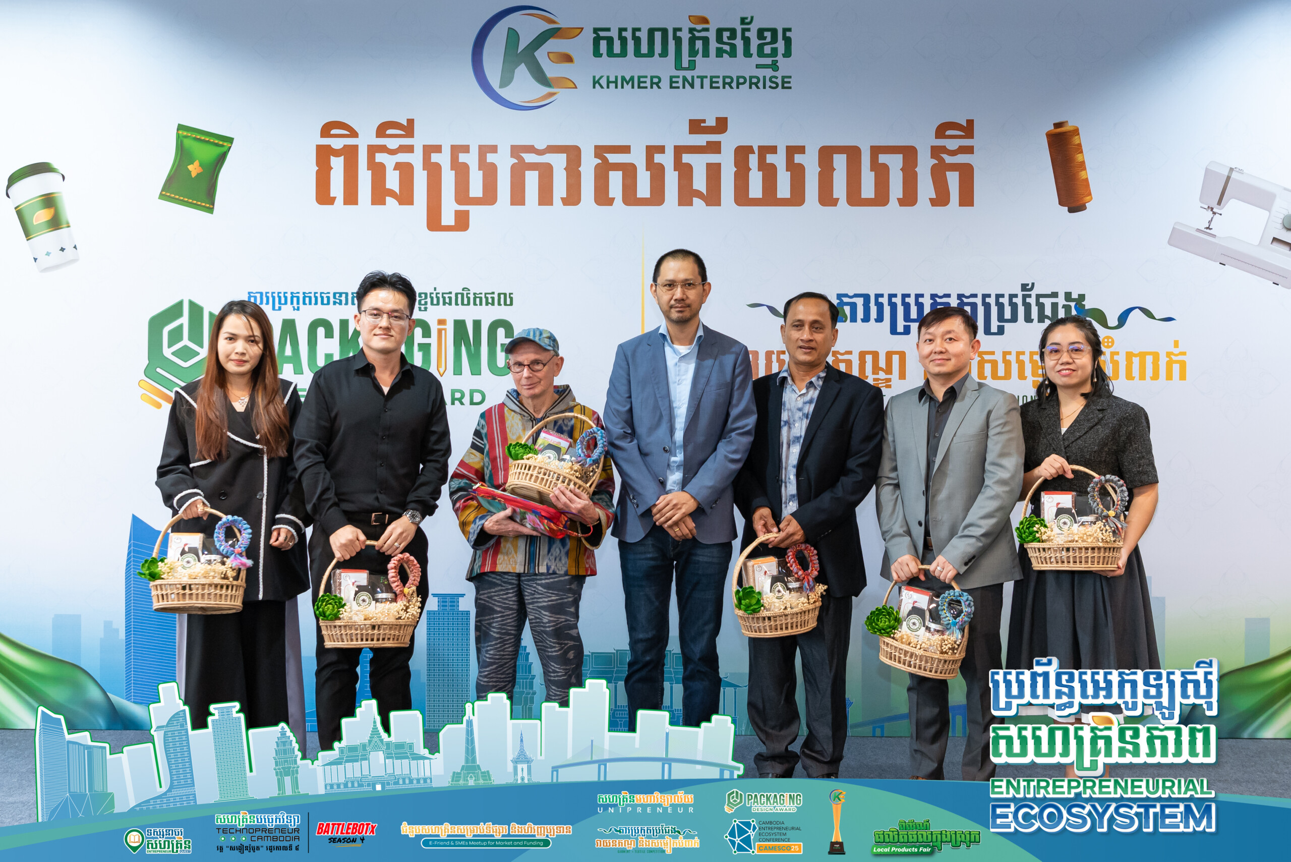 រាជធានីភ្នំពេញ, ថ្ងៃទី ១៦ ខែវិច្ឆិកា ឆ្នាំ ២០២៥ ៖ សហគ្រិនខ្មែរបានរៀបចំ “ពិធីប្រកាសជ័យលាភីការប្រកួត ប្រជែងរចនាសំបកវេចខ្ចប់” ដែលទទួលបានការចូលរួមពីសិស្សានុសិស្សប្រមាណ ១០០នាក់ ដើម្បី បង្ហាញពីនវានុវត្តន៍ និងជំនាញបច្ចេកទេសថ្មី ក្នុងវិស័យឧស្សាហកម្មវេចខ្ចប់ ។