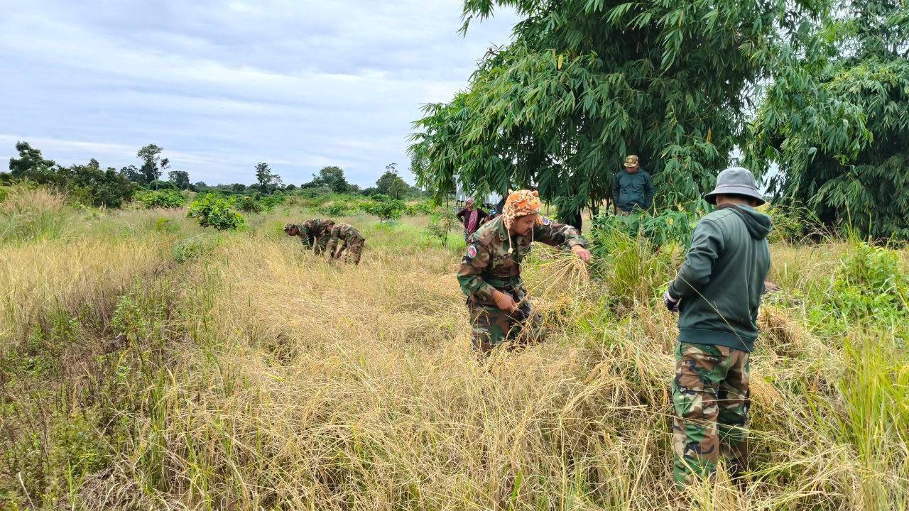 កងទ័ពជើងគោកនៃកងយោធពលខេមរភូមិន្ទ បានបញ្ជាក់បន្តថា ថ្ងៃទី១៧ ខែវិច្ឆិកា ឆ្នាំ២០២៥ ដោយបានផែនការពីលោកឧត្តមសេនីយ៍ទោ មៀច សាមុត មេបញ្ជាការកងពលតូចអន្តរាគមន៍លេខ១២៨ លោកវរសេនីយ៍ឯក អ៊ុក សំអុន មេបញ្ជាការវរសេនាតូចអន្តរាគមន៍២៨២ បានចាត់តាំងកំលាំងសរុបចំនួន១៥នាក់ ចុះជួយច្រូតស្រូវ ប្រជាពលរដ្ឋ ដែលខ្វះខាតកម្លាំងពលកម្ម ក្នុងការប្រមូលផលស្រូវ នៅឃុំអូរកណ្តៀរសែនជ័យ ស្រុកអូរគ្រៀងសែនជ័យ ខេត្តក្រចេះ ដោយសម្រេចបានលទ្ធផលសរុបចំនួន២ហិកតា ។