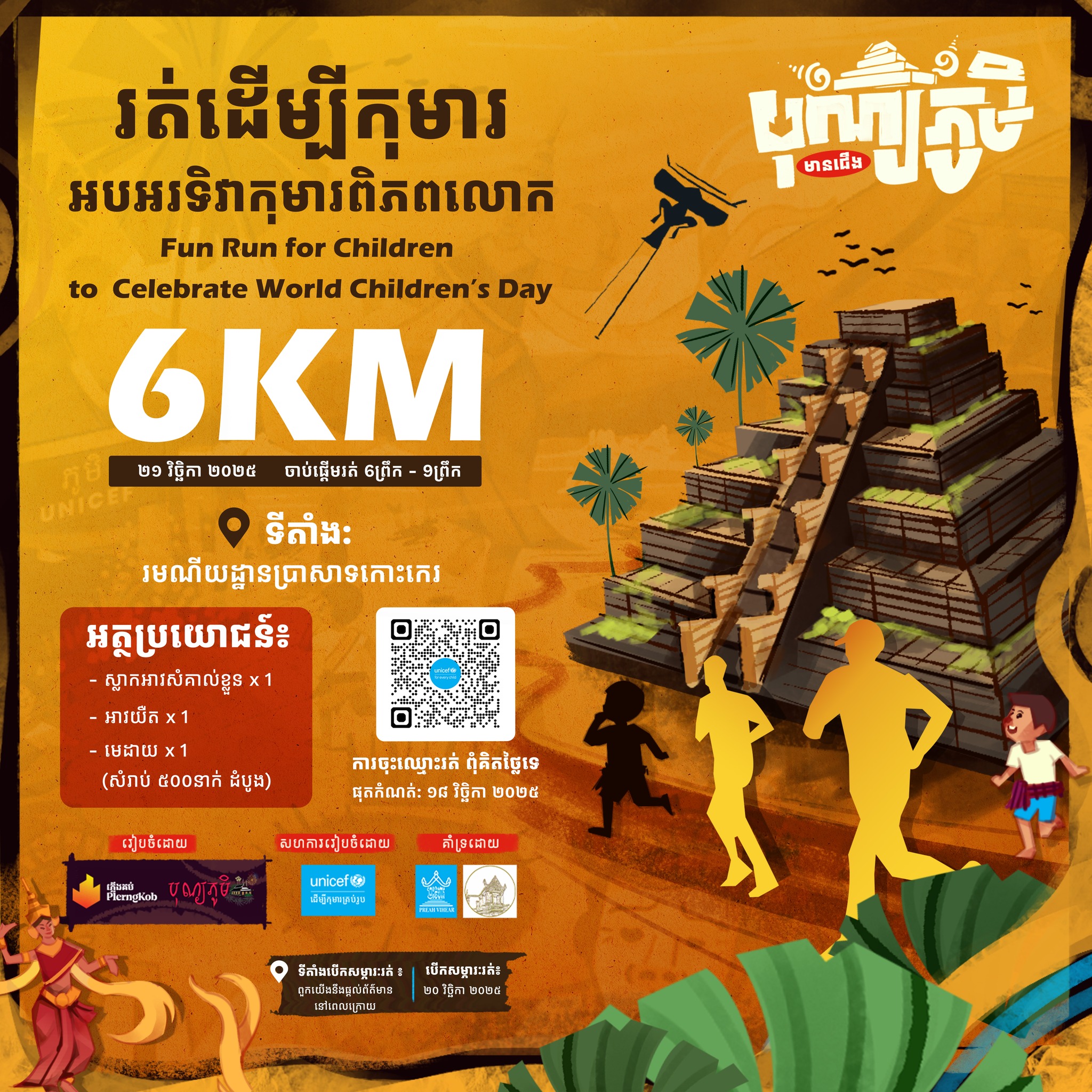 ដោយឡែក មហោស្រពសិល្បៈបុណ្យភូមិមានជើង ដែលនឹងរៀបចំនៅខេត្តព្រះវិហារ នេះដែរ បានដាក់បញ្ជូលកម្មវិធីថ្មីមួយ ដែលពុំដែលធ្លាប់មានពីមុនមកនោះ គឺការរត់ចម្ងាយខ្លី នៅជុំវិញប្រាសាទកោះកេរ រួមគ្នាដើម្បីសន្តិភាព និងសិទ្ធិកុមារ ក្នុងទិវាកុមារពិភពលោកឆ្នាំ ២០២៥ ដែល មហោស្រព សិល្បៈបុណ្យភូមិមានជើង បានរៀបចំសហការជាមួយ UNICEF Cambodia ។