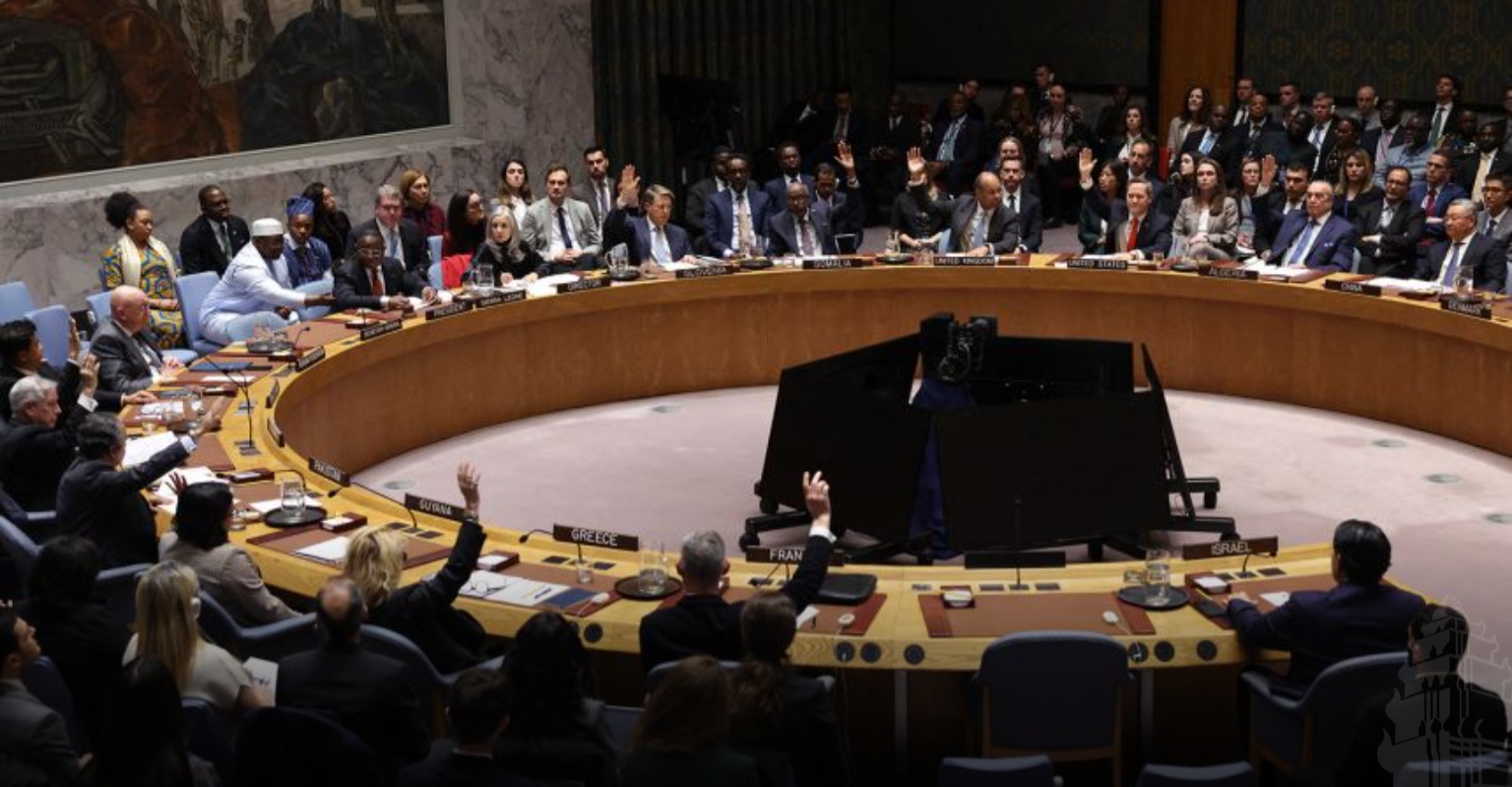 ហាម៉ាស់ថាសេចក្ដីសម្រេចរបស់ក្រុមប្រឹក្សាសន្តិសុខនោះផ្ដល់សិទ្ធិឱ្យបង្កើតកងកម្លាំងអន្តរជាតិដើម្បីមើលការខុសត្រូវតំបន់ហ្កាហ្សា។ ប៉ុន្តែផែនការនេះត្រូវបានប្រជាជនយើង (ប៉ាឡេស្ទីន), ក៏ដូចជាកងកម្លាំងរបស់យើង និងក្រុមប៉ាឡេស្ទីនដទៃទៀតប្រឆាំងជំទាស់។ ហាម៉ាស់យល់ថាសេចក្ដីសម្រេចរបស់ក្រុមប្រឹក្សាសន្តិសុខហាក់ដូចជាជួយសម្រេចគោលដៅរបស់អ៊ីស្រាអែលដែលធ្លាប់ប្រើប្រាស់កម្លាំងយោធាដើម្បីសម្រេចគោលដៅនេះប៉ុន្តែមិនបានជោគជ័យ។