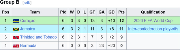 ក្រុមជម្រើសជាតិគូរ៉ាសៅបានត្រឹមស្មើជាមួយចាម៉ៃកា ដោយគ្មានគ្រាប់ស៊ុតបញ្ចូលទីគ្នា ដើម្បីបញ្ចប់នៅកំពូលតារាងពូល B នៃការប្រកួតជម្រុះប្រចាំតំបន់ Concacaf កក់កៅអីស្វ័យប្រវត្តិសាស្ត្រព្រឹត្តិការណ៍ World Cup ឆ្នាំ២០២៦ នៅសហរដ្ឋអាមេរិក កាណាដា និងម៉ិកស៊ិក។ ដ្បិតចាម៉ៃកា ឈរនៅលេខ ២ នៅសល់ឱកាសប្រកួតជម្រុះអន្តរទ្វីប។