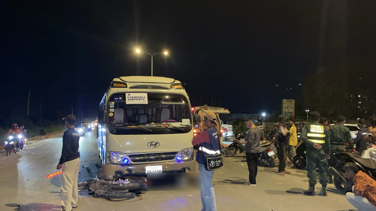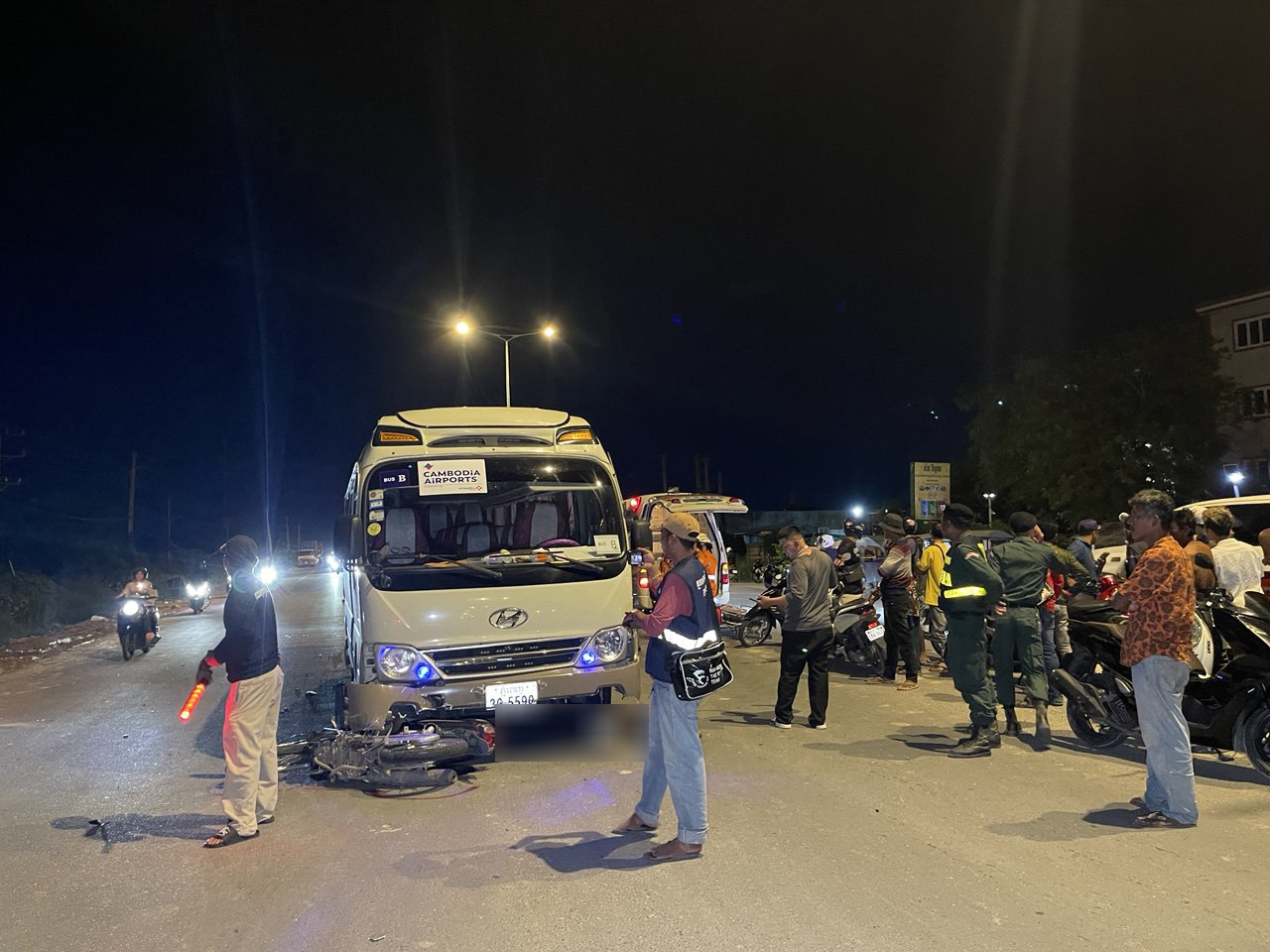 រាជធានីភ្នំពេញ ៖ បុរសជាសន្តិសុខ២នាក់បានស្លាប់ក្រោមកង់រថយន្តដឹកអ្នកដំណើរមួយគ្រឿងយ៉ាងអាណោចអាធ័ម ខណៈជនរងគ្រោះទាំង២បានជិះម៉ូតូហុងដាវ៉េវ គេចពីរថយន្ដមួយគ្រឿង ក៏ជ្រុលទៅផ្លូវម្ខាងទៀត បុកចូលក្រោមរថយន្តប្រភេទដឹកអ្នកដំណើរអូសកិនពីក្រោមជាច្រើនម៉ែត្រ ។