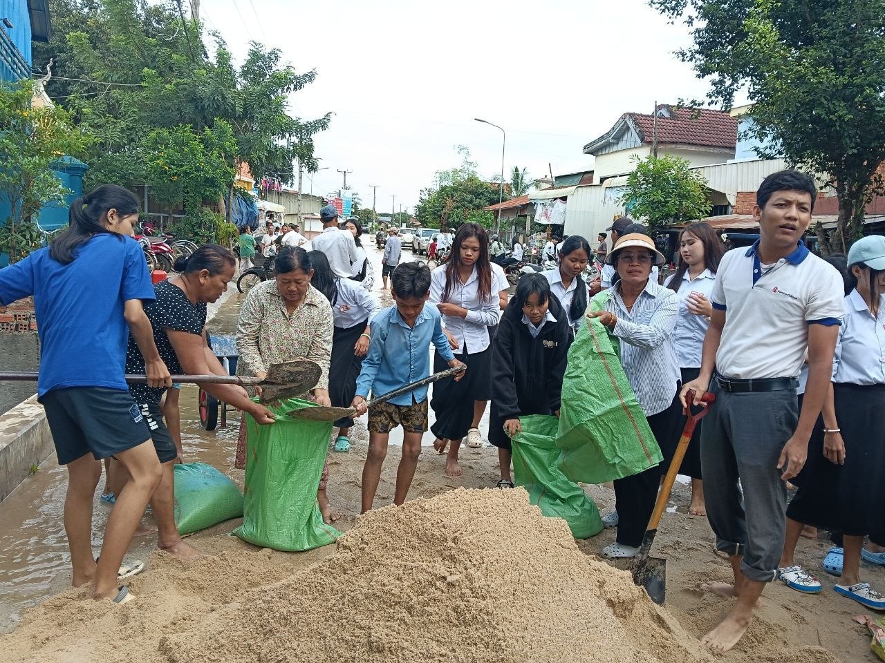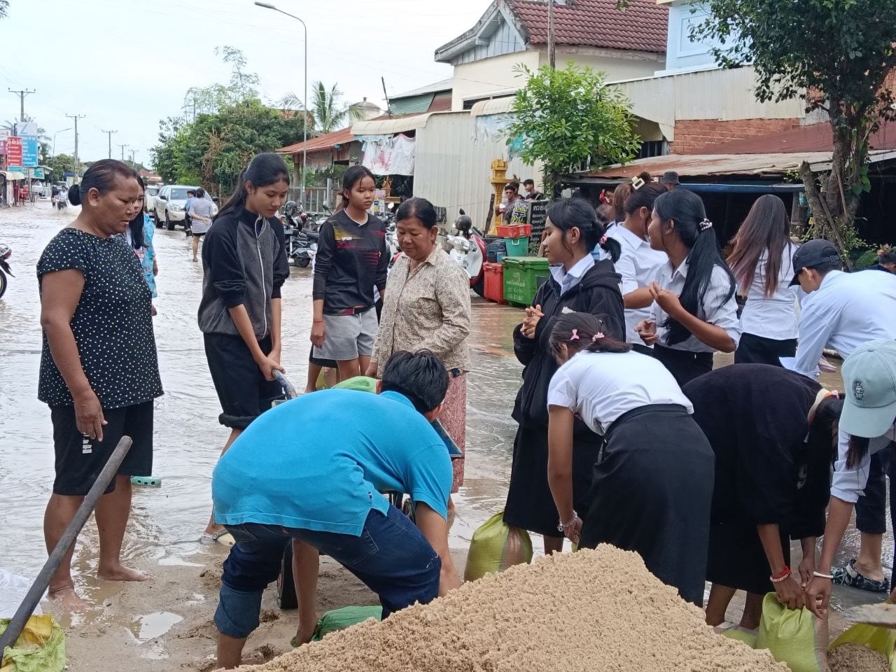 ខេត្តពោធិ៍សាត់៖ យុវជនសិស្សានុសិស្សមកពីសាលាចំនួន៣ បានចុះជួយទប់ទឹកជំនន់ ជាមួយអាជ្ញាធរនៅចំណុចក្តៅទាំង៣សង្កាត់ ។ នេះបើយោងតាមរដ្ឋបាលក្រុងពោធិ៍សាត់ បានប្រកាសនាព្រឹកថ្ងៃទី២០ ខែវិច្ឆិកា ឆ្នាំ២០២៥ ។