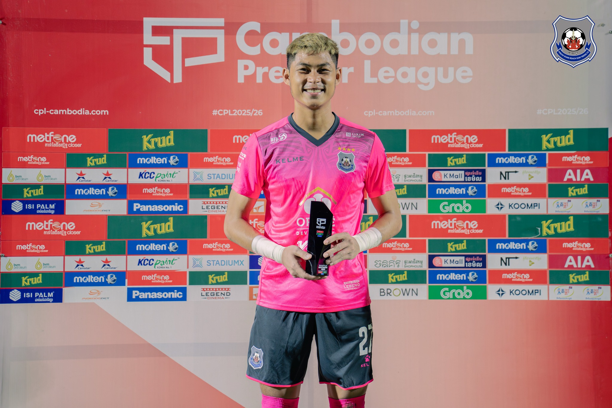 រាជធានីភ្នំពេញ ៖ អ្នកចាំទីដៃទី១របស់ក្លិបព្រះខ័នរាជស្វាយរៀងកីឡាករ វីរៈ ដារ៉ា បានបង្កការភ្ញាក់ផ្អើលយ៉ាងខ្លាំងក្នុងពិភពបាល់ទាត់កម្ពុជា ក្រោយពីរូបគេប្រើពេលត្រឹមតែ៩វិនាទីប៉ុណ្ណោះដើម្បីទាត់បាល់ពីចម្ងាយបញ្ចូលទីគូប្រកួតជួយក្លិបរបស់ខ្លួននាំមុខក្លិបអាយអេសអាយ ដង្កោសែនជ័យ នៅដើមវគ្គទី១នៃជំនួបលីគកំពូលកម្ពុជា កាលពីល្ងាចថ្ងៃទី១៩ ខែវិច្ឆិកា ឆ្នាំ២០២៥ ។