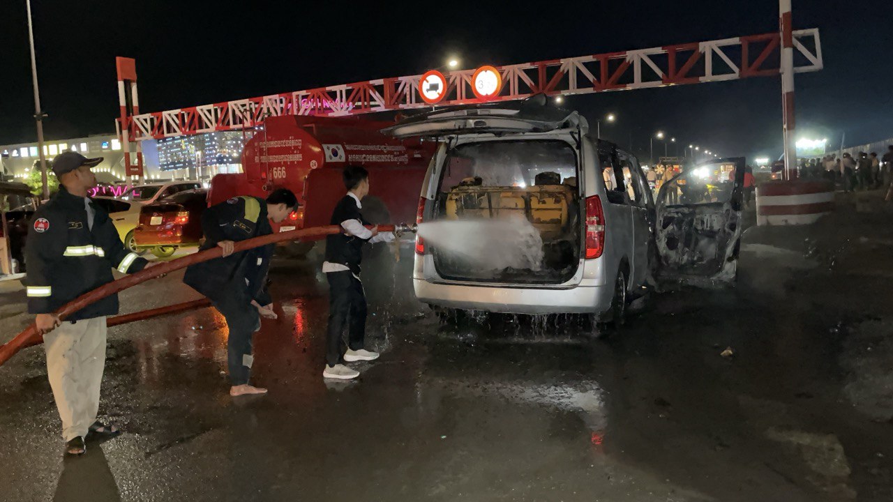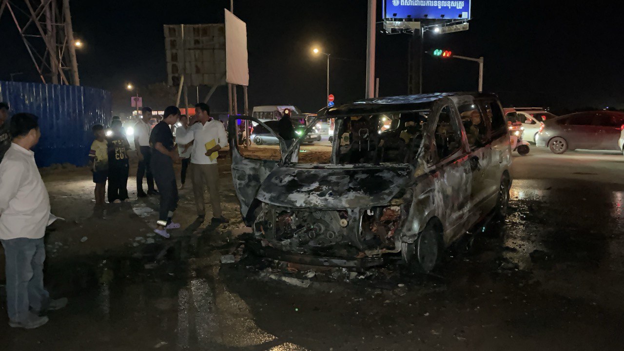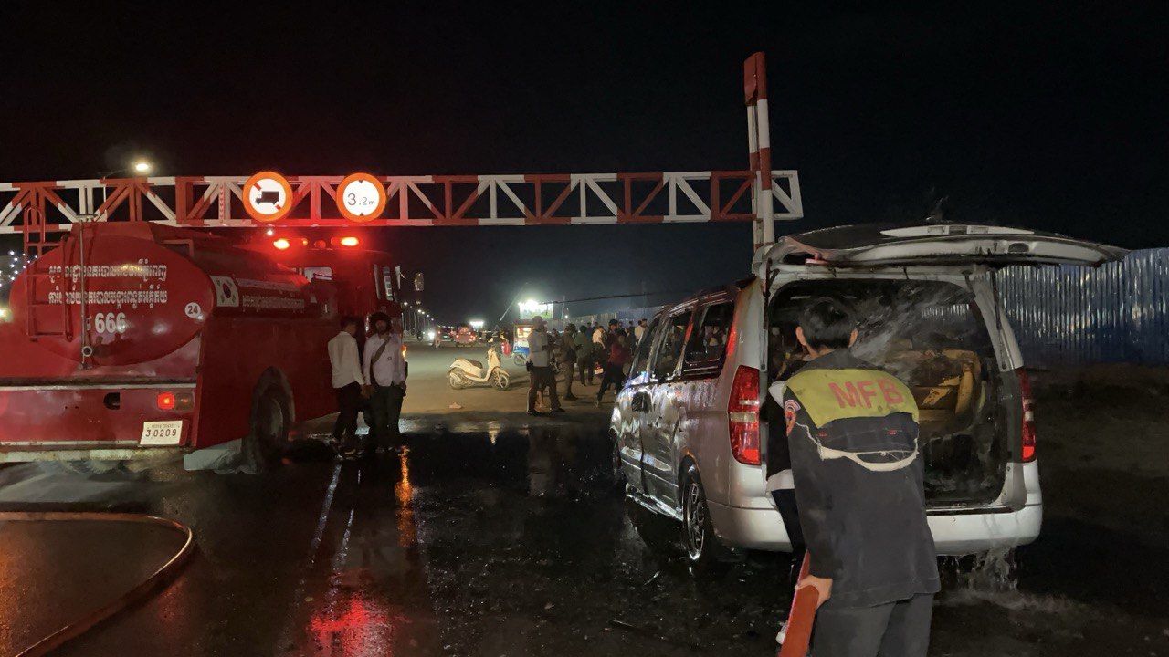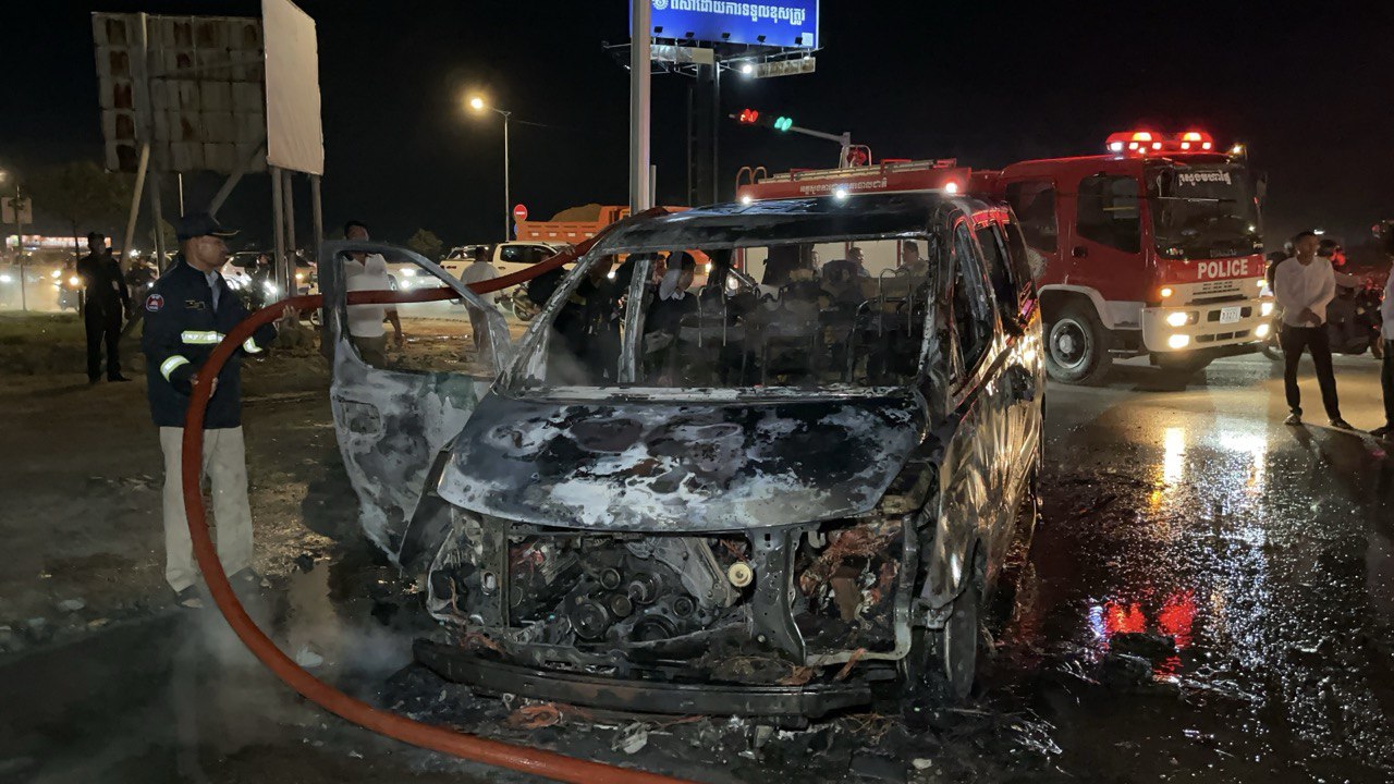 រាជធានីភ្នំពេញ ៖ រថយន្តមួយគ្រឿង Hyundai Starex ជិះជាលក្ខណៈគ្រួសារសុខៗ ស្រាប់តែឆ្លងចរន្តបង្កជាអណ្តាតភ្លើងឆាបឆេះយ៉ាងសន្ធោសន្ធៅ ផ្អើលប្រជាពលរដ្ឋនិងសមត្ថកិច្ចចេញរថយន្តពន្លត់អគ្គីភ័យអន្តរាគមន៍បាញ់ពន្លត់ កាលពីវេលាម៉ោង៦និង១៥នាទីយប់ថ្ងៃទី២០ ខែវិច្ឆិកា…