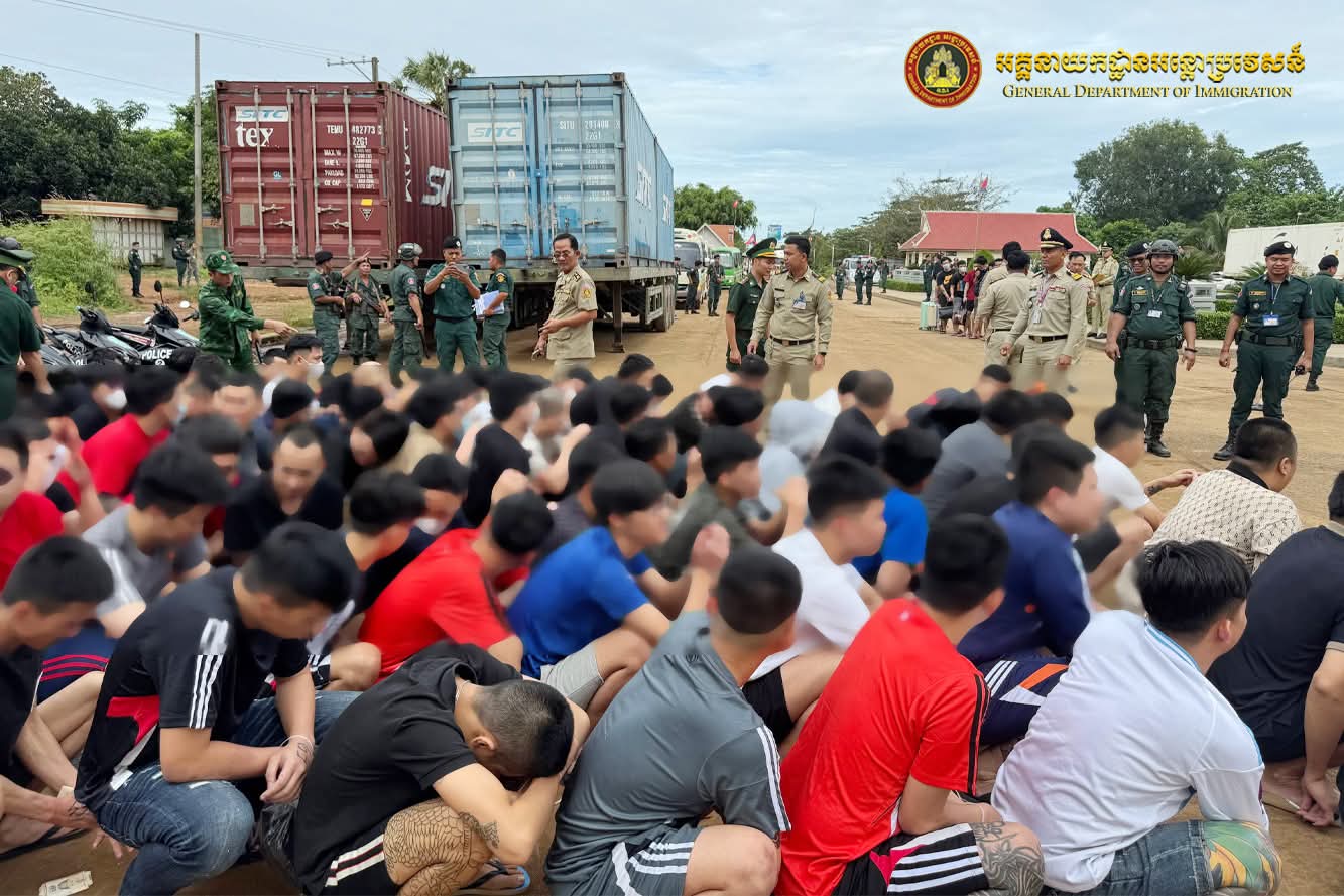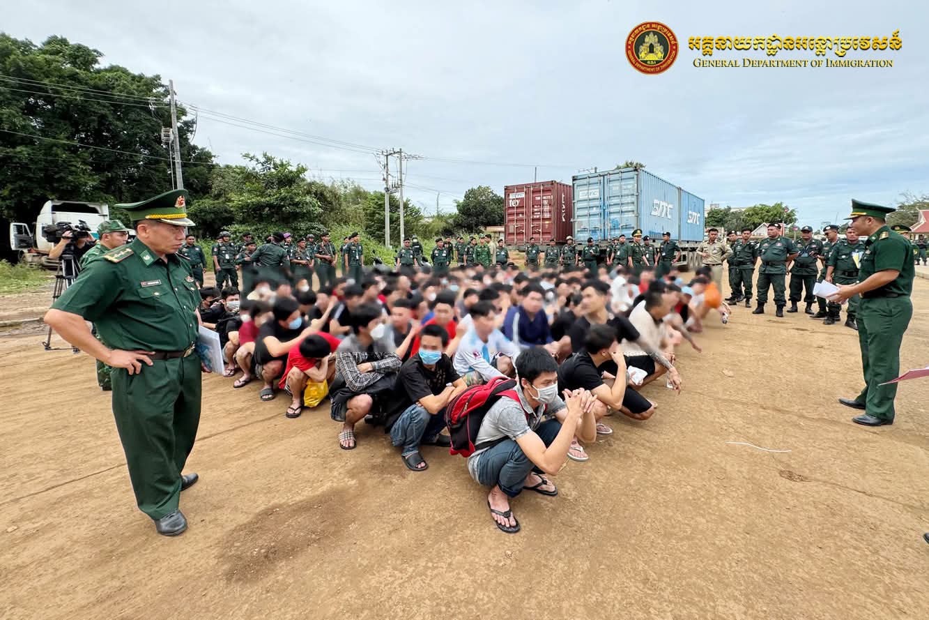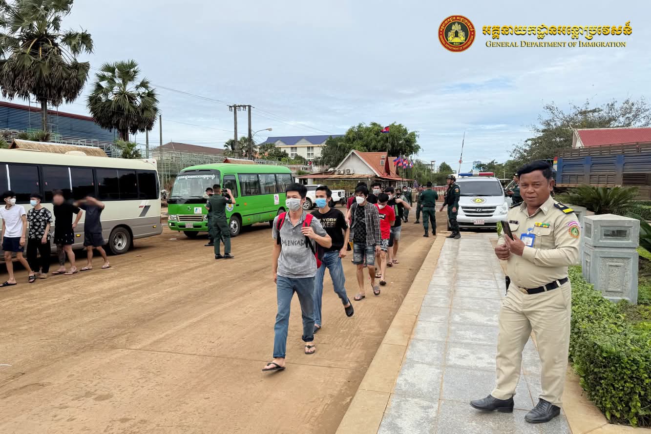 ត្រវនឹងថ្ងៃទី២១ ខែវិច្ឆិកា ឆ្នាំ២០២៥ តាមអនុសាសន៍ដ៏ខ្ពង់ខ្ពស់ ឯកឧត្តមអភិសន្តិបណ្ឌិត ឧបនាយករដ្ឋមន្ត្រី រដ្ឋមន្ត្រីក្រសួងមហាផ្ទៃ ឯកឧត្តម សន្តិបណ្ឌិត និងថ្នាក់ដឹកនាំក្រសួងមហាផ្ទៃ ឯកឧត្តម ឧត្តមសេនីយ៍ឯក សុខ វាសនា អគ្គនាយកអន្តោប្រវេសន៍ បានណែនាំឱ្យនាយកដ្ឋានស៊ើបអង្កេត និងអនុវត្តនីតិវិធី ធ្វើការបណ្តេញជនជាតិវៀតណាមសរុបចំនួន១១០នាក់ (ស្រី១នាក់) ចេញពីព្រះរាជាណាចក្រកម្ពុជា តាមប៉ុស្តិ៍នគរបាលច្រកទ្វារព្រំដែនអន្តរជាតិត្រពាំងផ្លុង ខេត្តត្បូងឃ្មុំ ពាក់ព័ន្ធករណីបំពានប្រកាសស្តីពីការបណ្តេញជនបរទេសចេញពីព្រះរាជាណាចក្រកម្ពុជា លួចស្នាក់នៅខុសច្បាប់ គ្មានលិខិតឆ្លងដែន និងលួចស្នាក់នៅធ្វើការងារខុសច្បាប់(Online