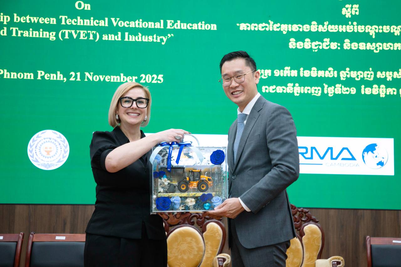 រាជធានីភ្នំពេញ ៖ ឯកឧត្តម ហេង សួរ រដ្ឋមន្រ្តីក្រសួងការងារ និងបណ្ដុះបណ្ដាលវិជ្ជាជីវៈ និងឯកឧត្តម Derek YIP ឯកអគ្គរដ្ឋទូតប្រទេសអូស្ត្រាលី ប្រចាំព្រះរាជាណាចក្រកម្ពុជា កាលពីថ្ងៃទី ២១ ខែវិច្ឆិកា ឆ្នាំ ២០២៥ បានអញ្ជើញជាសហអធិបតីក្នុងពិធីបិទសិក្ខាសាលាស្ដីពី «ភាពជាដៃគូរវាងវិស័យអប់រំបណ្ដុះបណ្ដាលបច្ចេកទេស និងវិជ្ជាជីវៈ និងឧស្សាហកម្ម» ដែលសហការរៀបចំដោយក្រសួងការងារ និងបណ្ដុះបណ្ដាលវិជ្ជាជីវៈ វិទ្យាស្ថាន Bendigo Kangan (BKI) នៃប្រទេសអូស្ត្រាលី និងក្រុមហ៊ុន RMA Cambodia PLC ដោយមានអ្នកចូលរួមប្រមាណ ៦០០នាក់ នៅវិទ្យាស្ថានជាតិបណ្ដុះបណ្ដាលបច្ចេកទេស ។