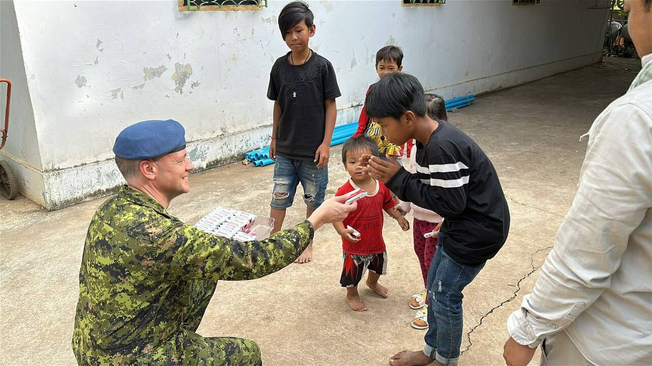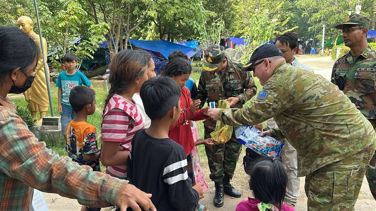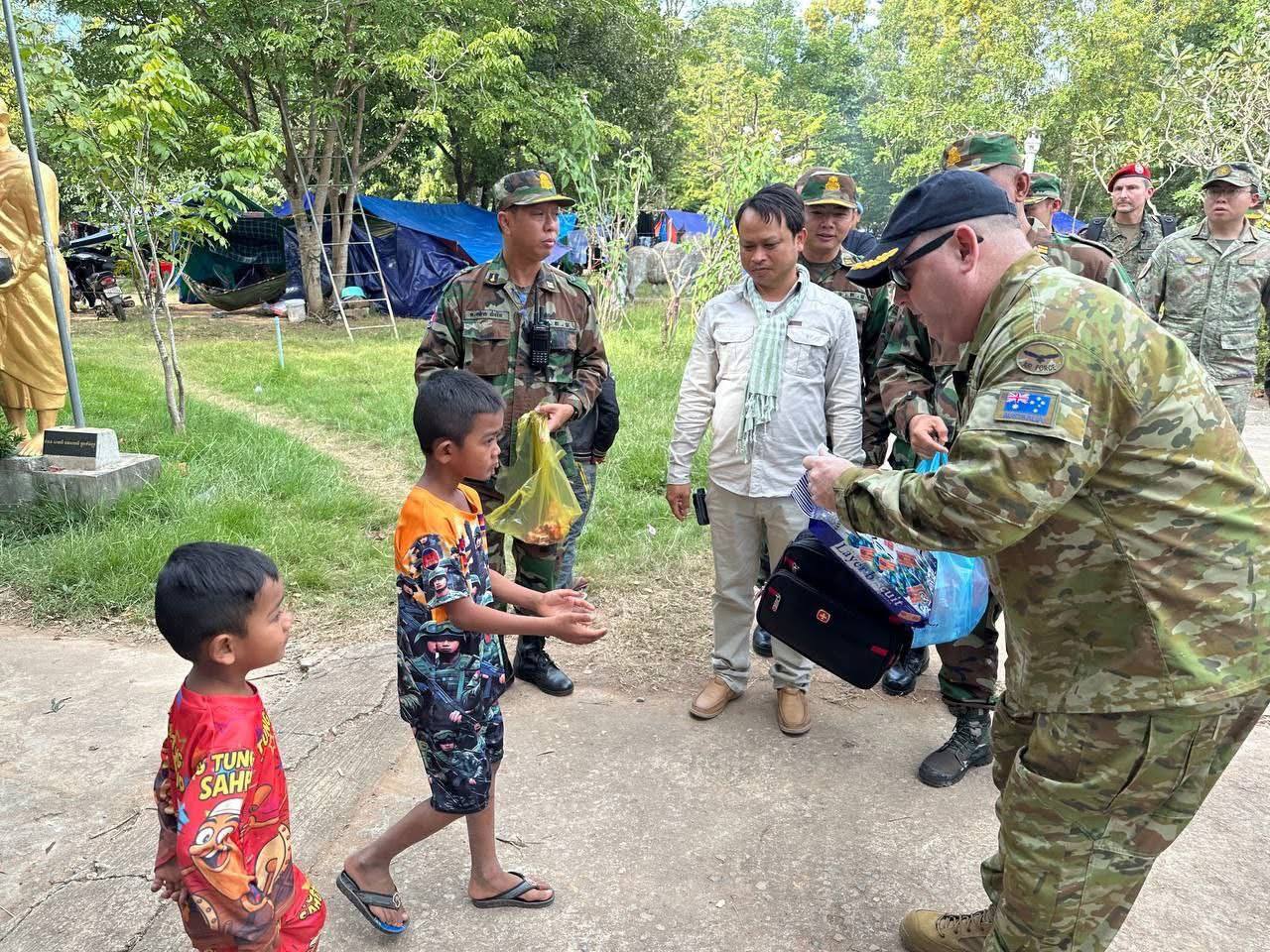 អនុព័ន្ធយោធាបរទេសនៅកម្ពុជា ចុះសួរសុខទុក្ខដល់ប្រជាជនភៀសសឹក ស្នាក់នៅបណ្តោះអាសន្ននៅវត្តចាន់ស៊ីសាមគ្គី