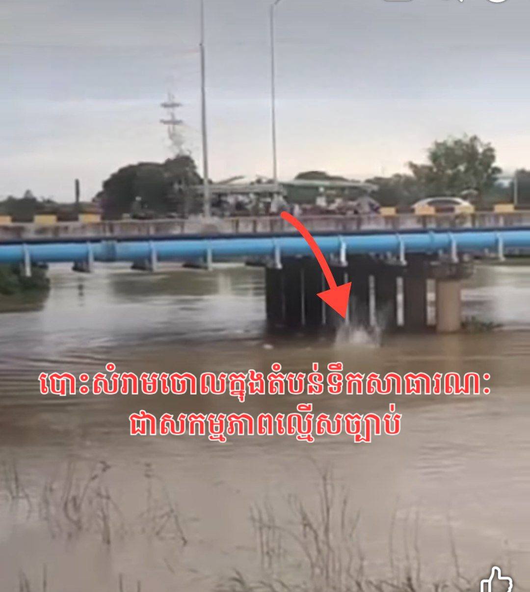 ខេត្តកណ្តាល ៖ កាលពីពេលថ្មីៗនេះ មានការផ្សព្វផ្សាយតាមបណ្តាញសង្គម ក៏ដូចជាបណ្តាញសារព័ត៌មានមួយចំនួន ស្តីពីសកម្មភាពរបស់បុគ្គលចំនួន ២នាក់ ដោយម្នាក់ជាអ្នកបើកបរម៉ូតូសណ្តោងរ៉ឺម៉ក ដឹកស្បោងសំរាម សំណល់រឹង និងបុគ្គលម្នាក់ទៀត បានយកសំរាមក្នុងស្បោងសំរាមជាច្រើននៅលើរ៉ឺម៉ក បោះចូលទៅក្នុងស្ទឹងព្រែកត្នោត ចំណុចស្ពានព្រែកហូរ ក្នុងភូមិសាស្ត្រក្រុងតាខ្មៅ ខេត្តកណ្តាល។ ករណីនេះនាំឲ្យមានការរិះគន់យ៉ាងខ្លាំងពីសាធារណជន ។
