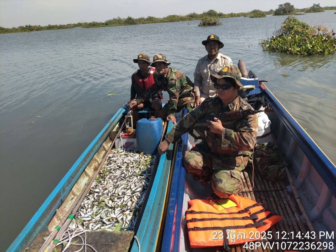 ជាក់ស្តែង គណៈបញ្ជាការបង្ក្រាបបទល្មើសនេសាទខុសច្បាប់បឹងទន្លេសាប បានប្រកាសនាថ្ងៃទី២៣ ខែវិច្ឆិកា ឆ្នាំ២០២៥នេះថា ៖ កងកម្លាំងតំបន់ប្រតិបត្តិការសឹករងសៀមរាបចំណុះឲ្យគណៈបញ្ជាការកងឯកភាព បង្ក្រាបបទល្មើសនេសាទបឹងទន្លេសាប នាថ្ងៃទី២៣ ខែវិច្ឆិកា ឆ្នាំ២០២៥ បានចាត់តាំងកម្លាំងល្បាតត្រួតពិនិត្យ ក្នុងភូមិសាស្ត្រ ភូមិមាត់ខ្លា ឃុំអន្លង់សំណរ ស្រុកជីក្រែង ខេត្តសៀមរាប បានជួបជនល្មើសលួចនេសាទខុសច្បាប់ ដោយប្រើប្រាស់ ឧបករណ៍ឆក់ និងទូកចំនួន២គ្រឿង។